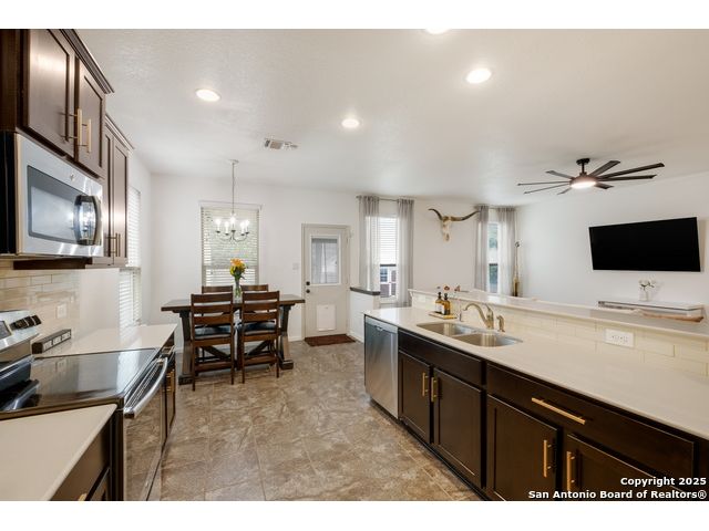 Welcome to your dream home! This beautifully updated 4-bedroom, 2.5-bath home features a spacious open layout with a large family room, an upstairs game room, and a private primary suite downstairs with a custom closet organizer. The kitchen includes granite countertops and modern appliances making it perfect for entertaining. Recent upgrades include fresh interior paint 2025, flooring in the master bedroom 2025, ceiling fans 2025, a new door with a doggy door 2024, epoxy garage flooring 2024, gutters 2024, an outdoor shed with warranties 2024, graded Bermuda grass, updated cabinet handles, bathroom fixtures, and newer washer, dryer, and fridge 2023. Additional features include a water softener, new water heater, Vivint smart security system, and outdoor security system. Conveniently located near Fischer Park, shopping, dining, and major highways - plus NO HOA! All appliances stay - move in with ease! Schedule your showing today and make this beautiful home yours!
