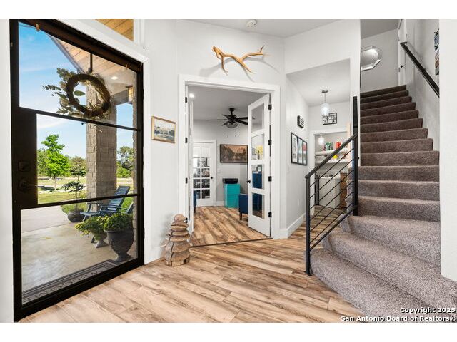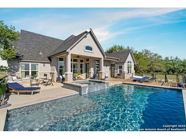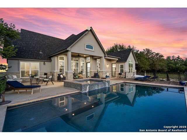 Hill Country Retreat on 25 Acres minutes from Johnson City, Fredericksburg, and local wineries. Less than an hour to both Austin and San Antonio - this 25-acre estate offers spectacular panoramic views of the Texas Hill Country. The home features 4 bedrooms, including a flexible space ideal for a guest room, game room, or home gym. An additional bathroom can easily be added upstairs. The open-concept living and kitchen area is perfect for entertaining, and the dedicated office provides a quiet space to work or create. Step outside to your private pool and hot tub, perfectly positioned to take in the sunset views. Enjoy established riding and UTV trails throughout the neighborhood, all within a gated neighborhood for added privacy and peace of mind.