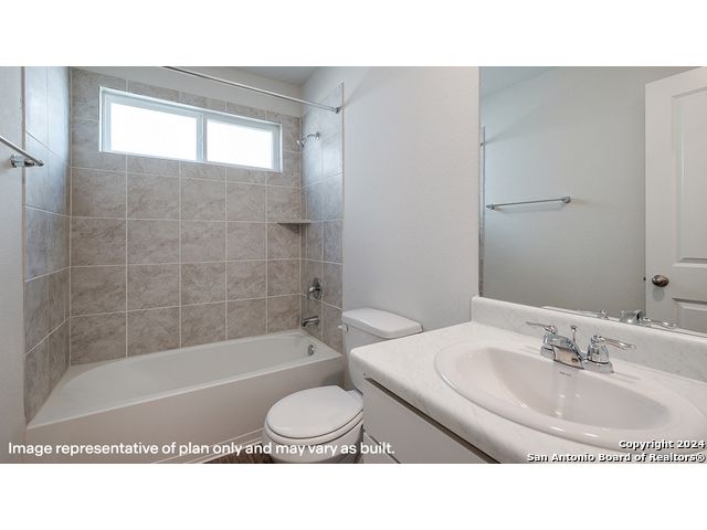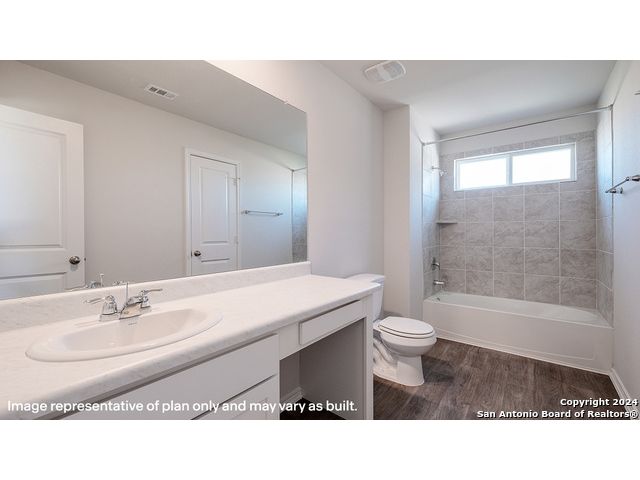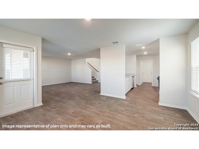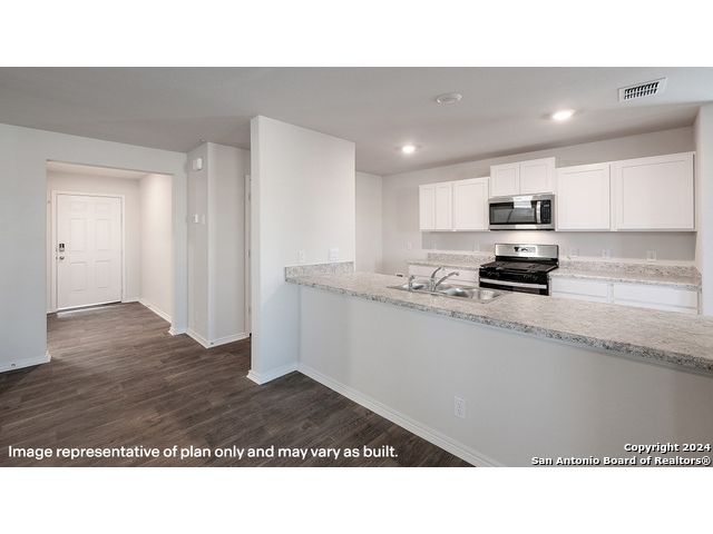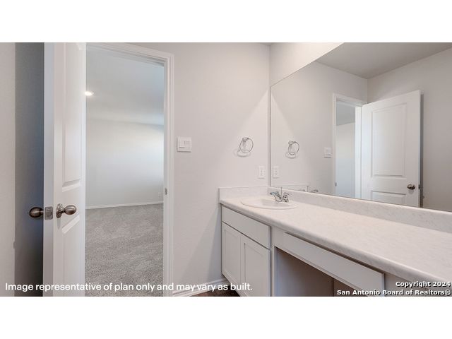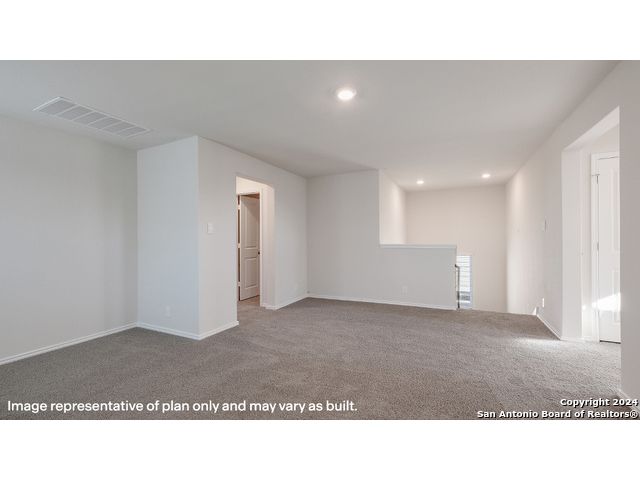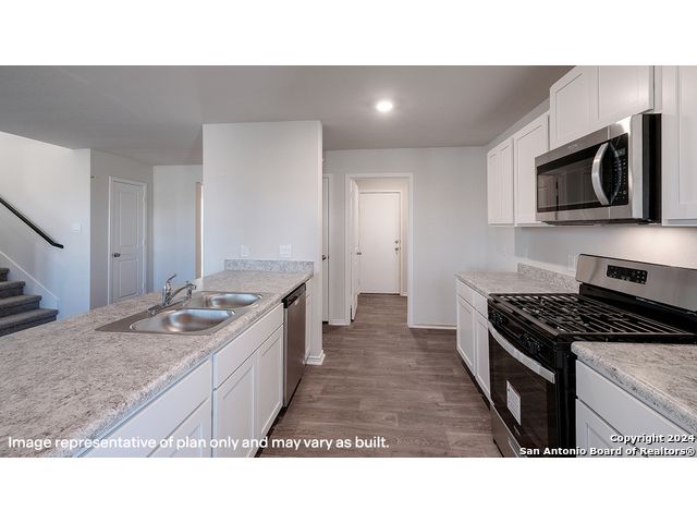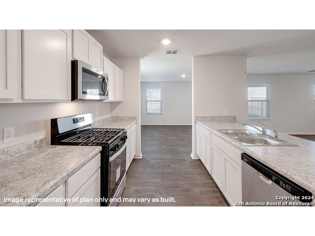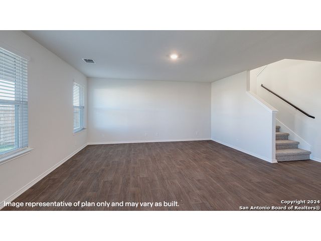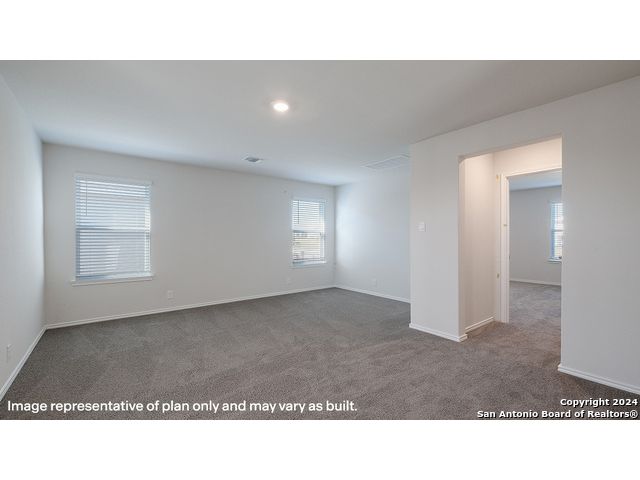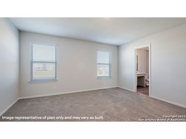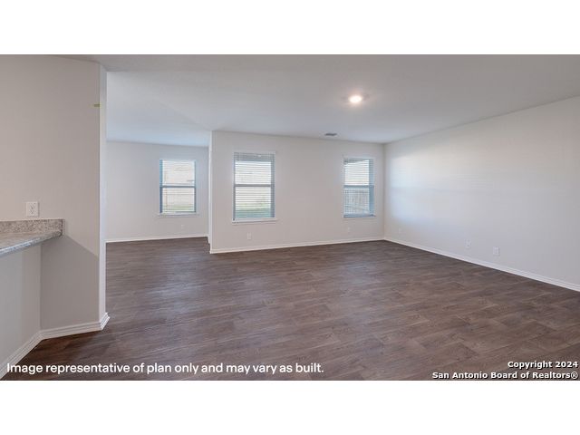Welcome to The Wolters, a stunning two-story home featured in our Riverstone at Westpointe community in San Antonio, TX. This floor plan offers 3 classic front exteriors, a 1-car garage, and a full yard landscaping and irrigation package, ensuring your home looks its best every single day. Inside this 4 bedroom, 3 bathroom home, you'll find 2530 square feet of open-concept living. A inviting from porch and foyer leads to a blended living room, kitchen and dining area, perfect for entertaining and every day living. Your kitchen includes quartz counter tops, stainless steel appliances and shaker style cabinetry. The corner pantry is spacious and includes plenty of built-in shelving. A laundry room is also conveniently located off the kitchen and connect to the garage. With a secondary bedroom and full bath located off the front foyer, this home offers private space for out-of-town guests. Head up the wide staircase to find a versatile loft with storage space, the private main bedroom suite, two secluded secondary bedrooms with carpet flooring and walk-in closets and a third full bath. The private main bedroom is an oasis, featuring an attractive ensuite bathroom and oversized walk-in closet. Enjoy quality quartz vanity tops, a combined bath tub and shower and plenty of counter space. Additional features include sheet vinyl flooring in entry, living room, and all wet areas, quartz bathroom counter tops, and our HOME IS CONNECTED base package. Using one central hub that talks to all the devices in your home, you can control the lights, thermostat and locks, all from your cellular device.