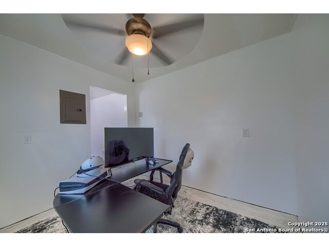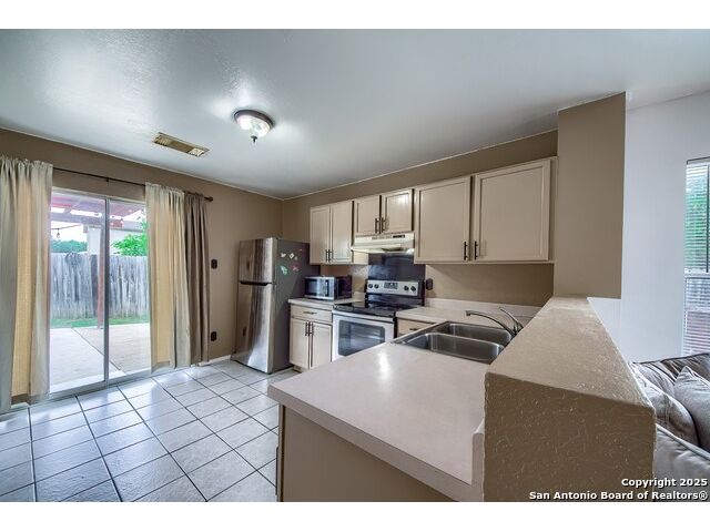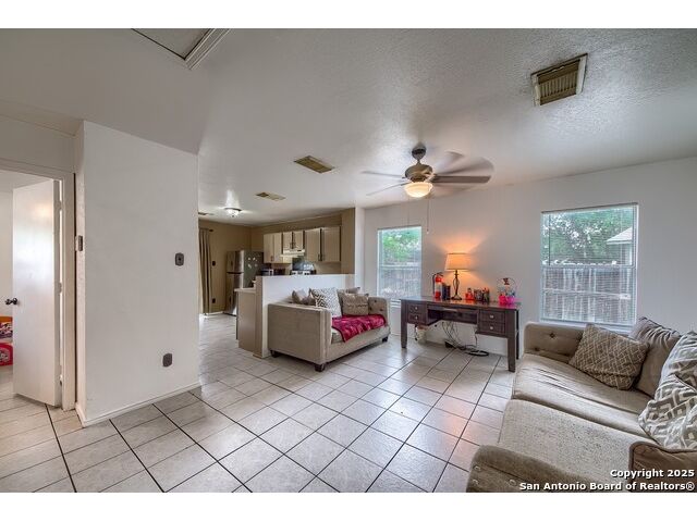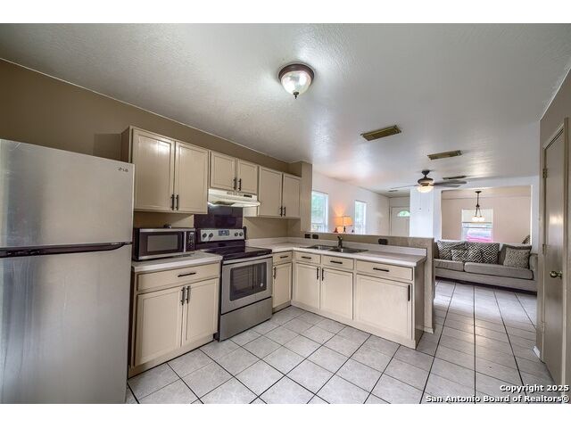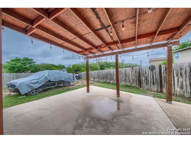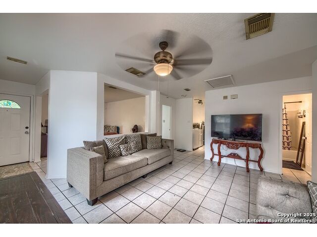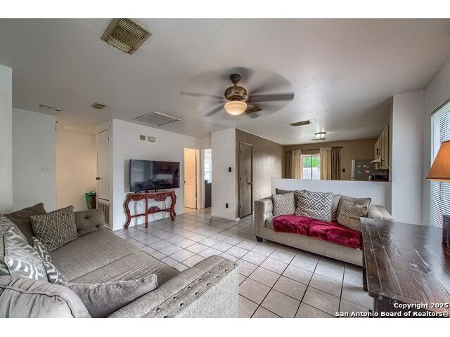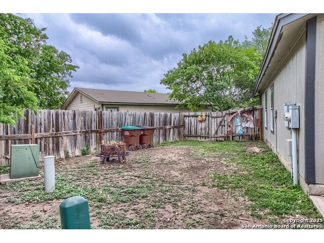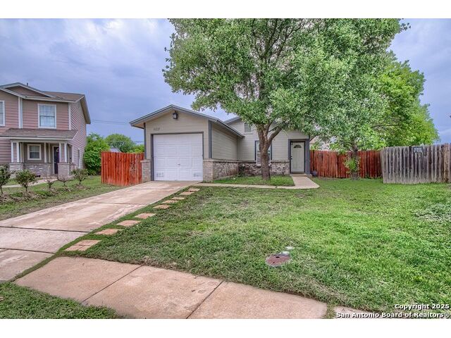Painted and updated two bedroom all tile single full bath home on small private cul-de-sac lot with attached single car garage. Inside utility area. Entertainers delight with covered patio large fenced yard and big beautiful mature trees! Convenient to Loop 410, restaurants and lots of shopping! A Must See!! NO CITY TAXES ... !! Garage is 10 x10 storage area!! Priced to sell!!!
