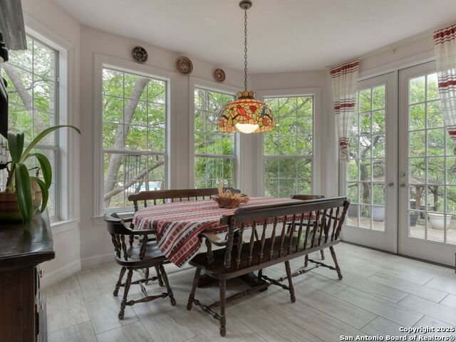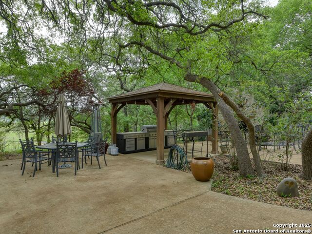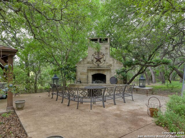 Welcome to an exquisite retreat set within a serene, wooded environment spanning over 5.693 +/- acres. This remarkable property seamlessly blends traditional charm with modern amenities, offering both residential and commercial potential. Its unique features and tranquil setting make it an ideal choice for those seeking a private haven with plenty of room for entertaining and leisure. The property boasts a covered outdoor kitchen equipped with top-of-the-line appliances and a BBQ area, perfect for hosting gatherings and enjoying meals al fresco. This space is designed for comfort and convenience, allowing you to entertain with ease. Adjacent to the outdoor kitchen, an expansive outdoor living area awaits, centered around a large, inviting fireplace. This space offers a cozy ambiance for evening gatherings or quiet relaxation under the stars, making it an ideal spot for entertaining guests or enjoying a peaceful night. The sports pool is a centerpiece of the outdoor amenities, providing a refreshing escape during warm months. Additionally, architect's plans are available for a gazebo, kitchen, and bathroom next to the pool, offering opportunities to further enhance this space and create a complete outdoor oasis. The property includes an oversized garage, which not only offers ample parking and storage space but also features a large apartment above. This apartment provides additional living space equipped with a downstairs half bath and a laundry room. These facilities ensure convenience and accommodate outdoor activities. Overall, this exquisite retreat offers a blend of luxury and tranquility, making it a perfect choice for those in search of a serene environment with endless possibilities for relaxation and entertainment. Not conveying Tiffany lamp in kitchen eating area, washer and dryer in main house!