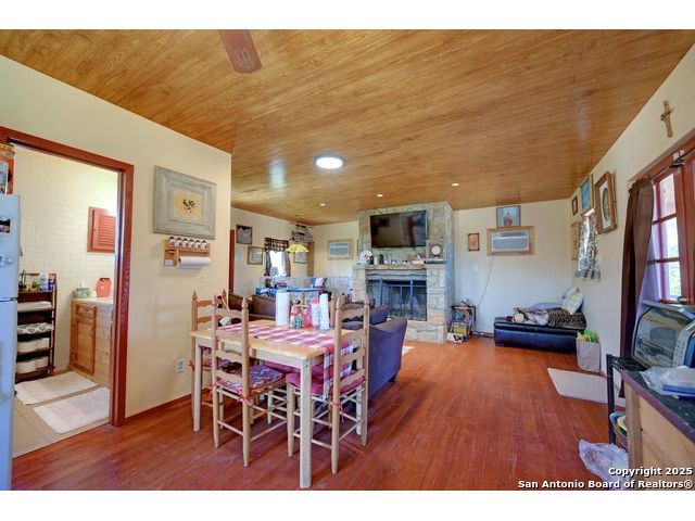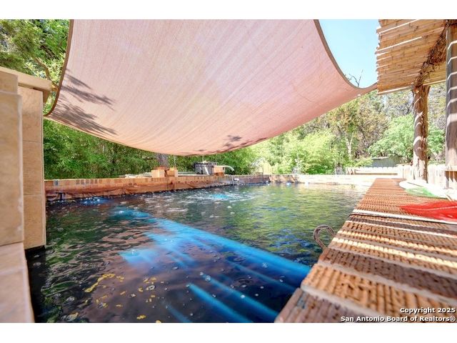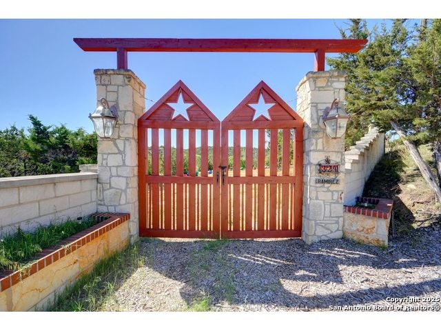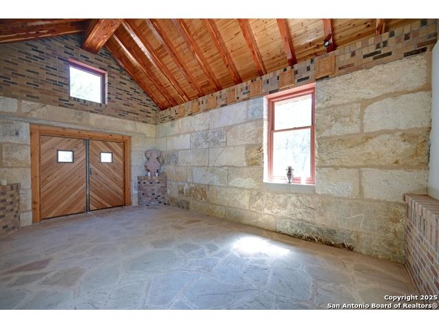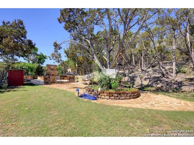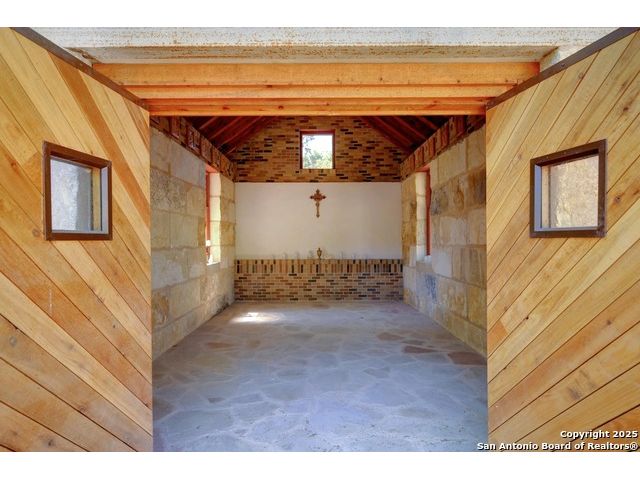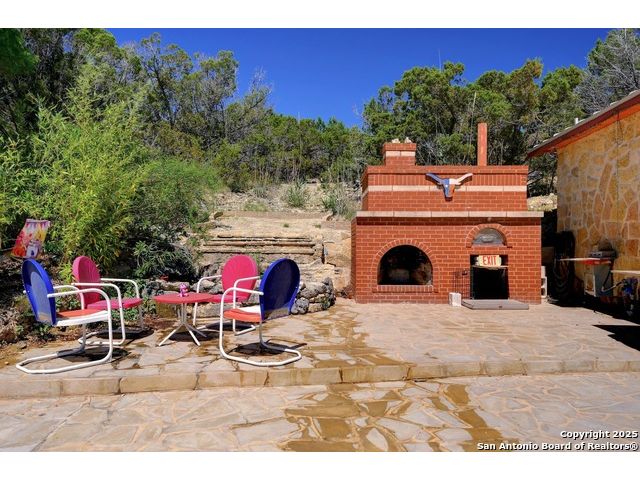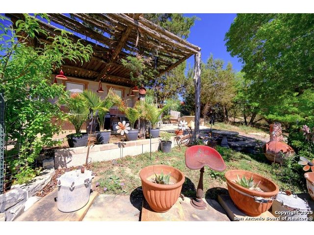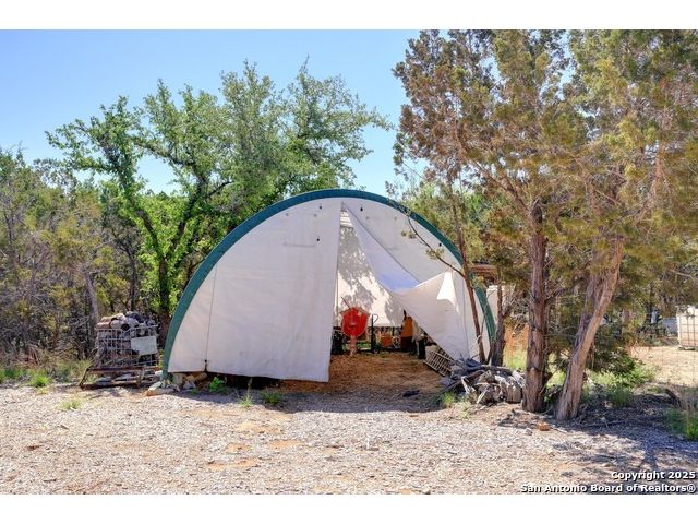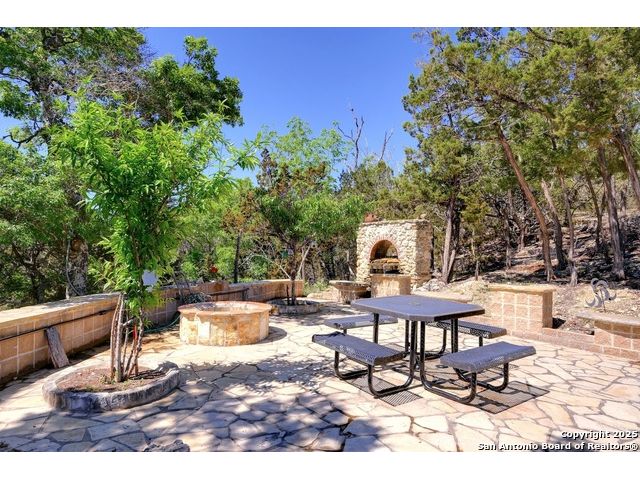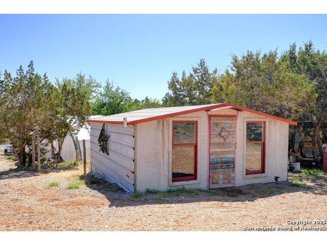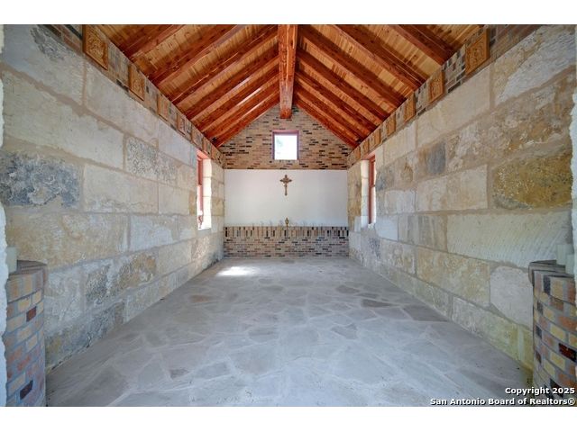 Amazing Unicorn Property!!! 18 +/- Unrestricted acres with huge views and wet weather creek. Massive Sycamore Trees and Large Oaks abound on this hidden gem of a property. Owners are stone masons and lots of amazing stonework has been done on the property. Everything is extremely well built. There is a cozy cabin to stay in while you build your forever home. Two car detached garage with lift rack. There is a chapel built from solid 2'x4' limestone blocks that is just amazing. Several outdoor kitchens on property. Wood fired Pizza Oven, numerous fountains and patio areas to enjoy the views and Hill Country. Two Ponds with Coy fish. Electrical and water lines have been installed all across the property. There is also a foundation for a forever home that was started. Part of the creek has had the walls rocked in to create a natural swimming hole. Dog lovers take note the owner has built a large dog run with a dog palace. It's heated and air conditioned. There is a pool for his dogs to cool off in under a shaded porch. He keeps the Saint Augustine grass watered and lush for his furry friends.