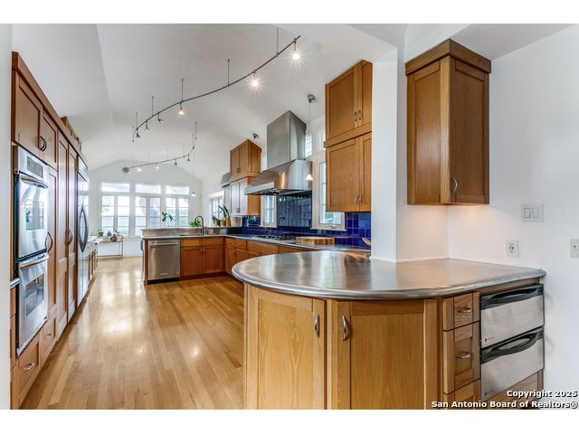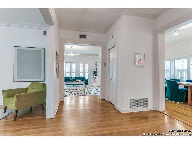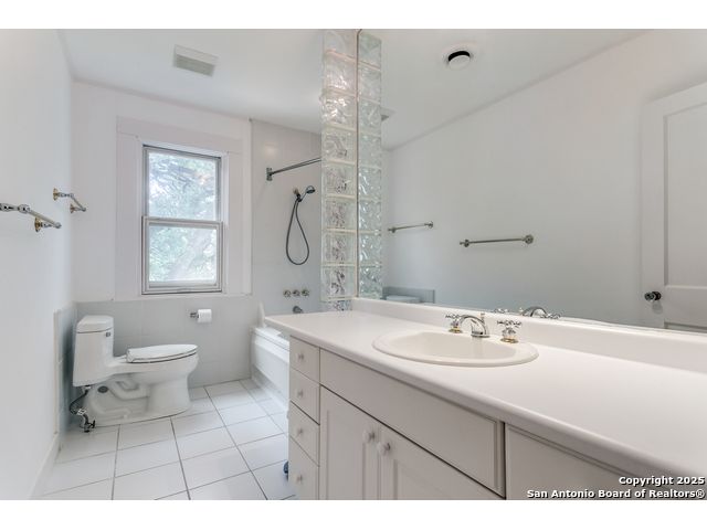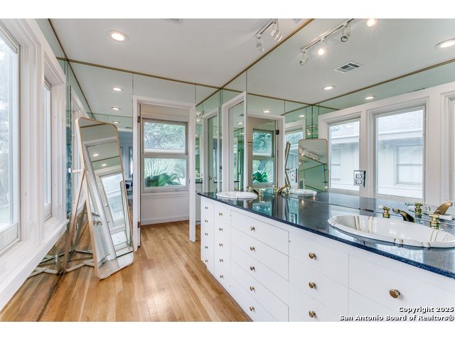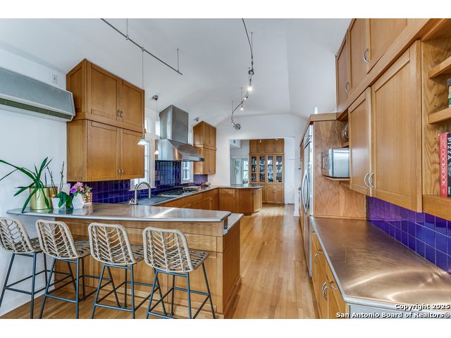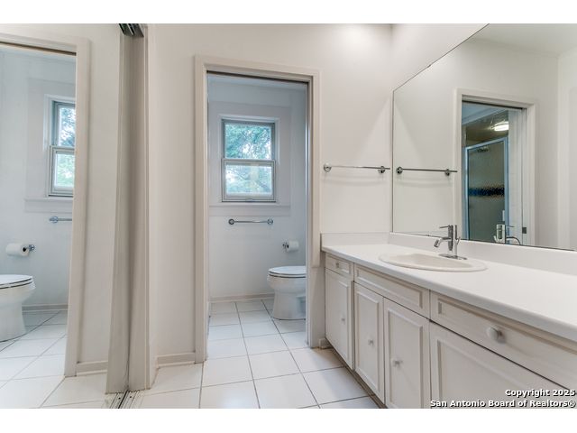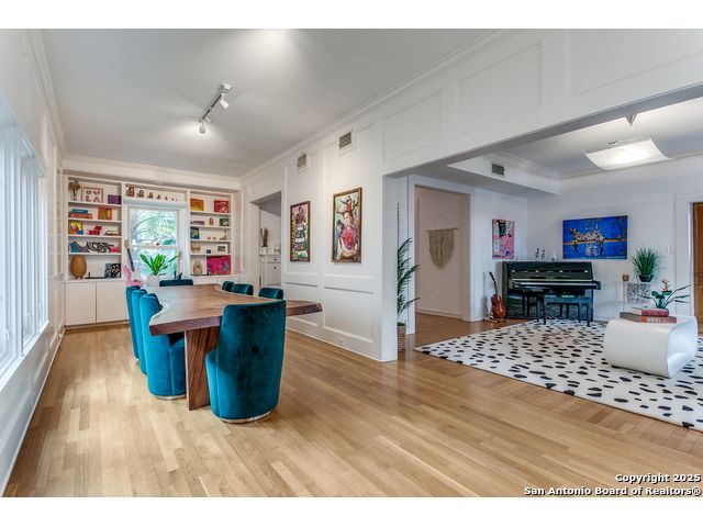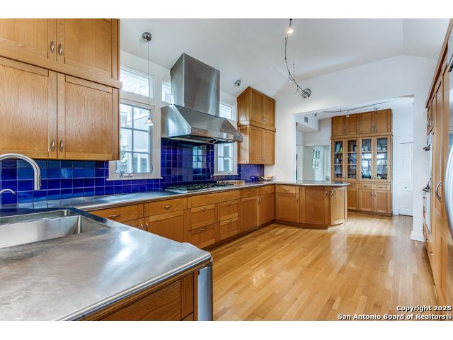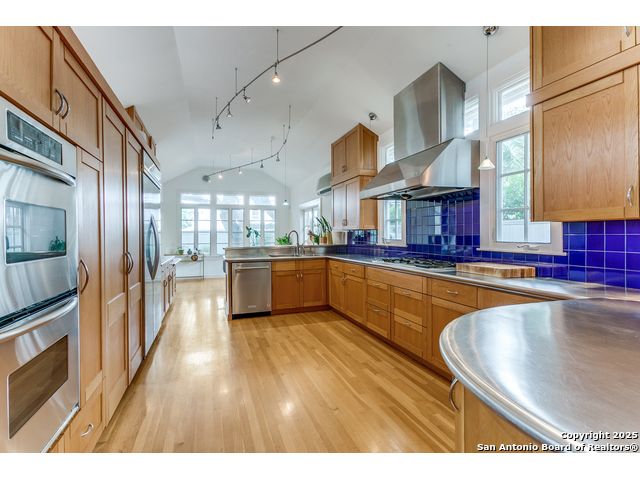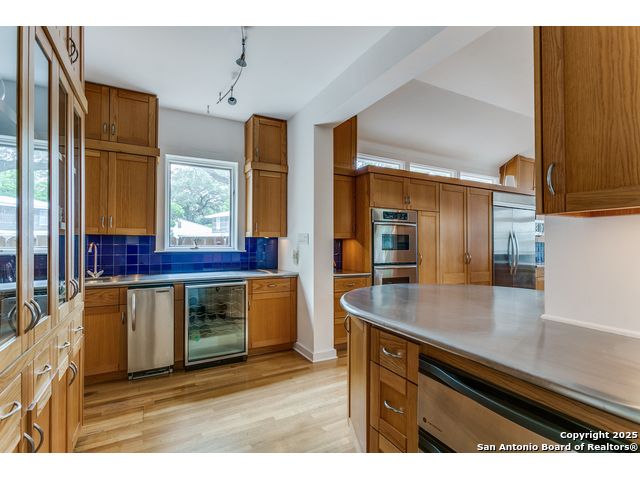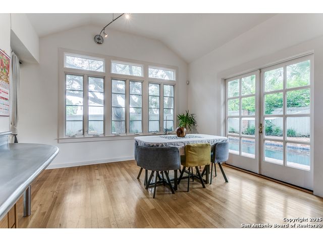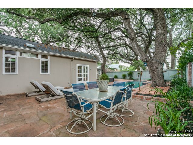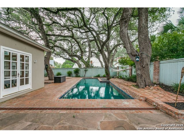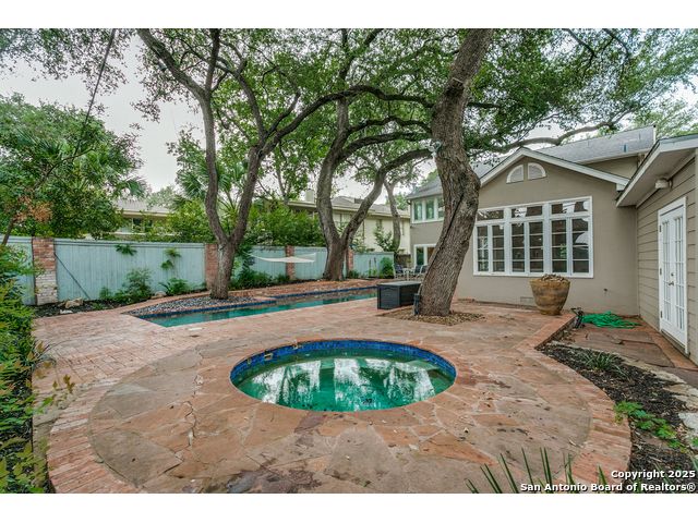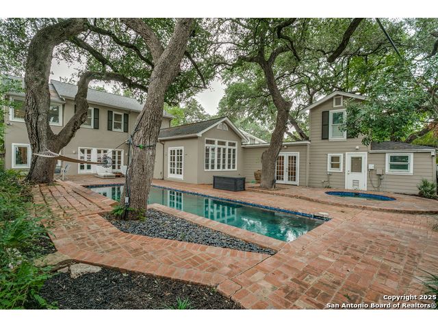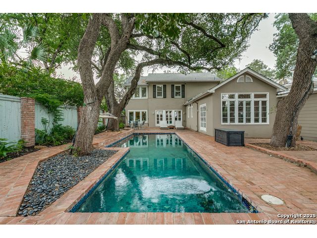 Beautiful traditional two story home in the heart of Alamo Heights. Flexible floor plan offers multiple living and dining spaces perfect for entertaining large groups. Tons of natural light through out. Chef's kitchen with stainless steel countertops, top of the line appliances, dual pantries, two warming drawers, and gas cooking. Breakfast room has access to the gas heated pool(which heats quickly and efficiently) and expansive bricked patio. Upstairs master suite with en suite bath &views of the treetops plus 3 more bedrooms and 2 full bathrooms.Do not miss upstairs exercise room/office above family room. New water heater 11/24, new dishwasher, new touches kitchen faucet