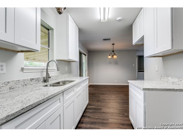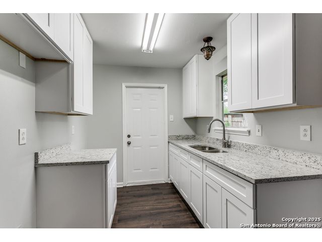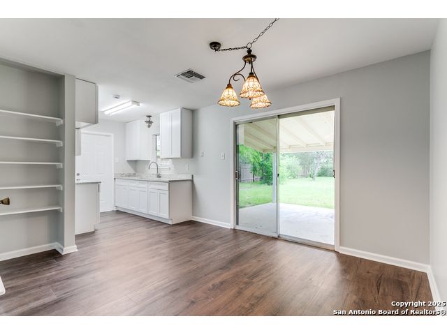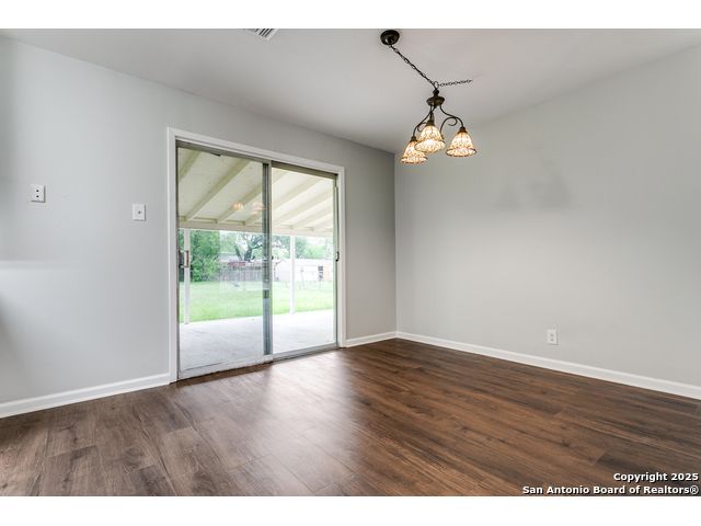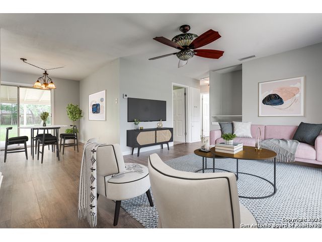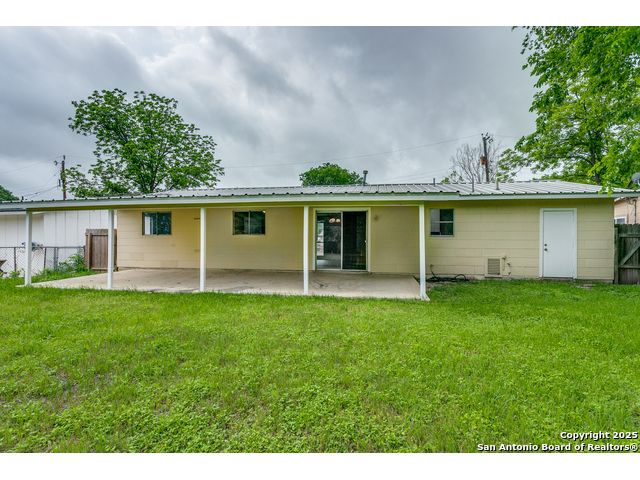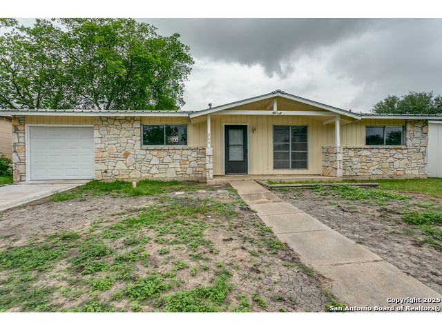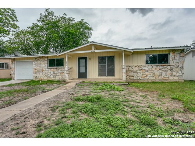Welcome to this charming mid-century style home featuring fresh updates and inviting spaces throughout! The light-filled living and dining area boasts an open layout, neutral tones, and stylish flooring that complement any decor. The kitchen opens to the dining area, making entertaining a breeze, while the spacious backyard offers endless potential for outdoor living. With a covered front porch, attached garage, and a quiet, convenient location close to schools, shopping, and Randolph AFB, this home is perfect for first-time buyers or anyone looking for a comfortable retreat in Universal City.