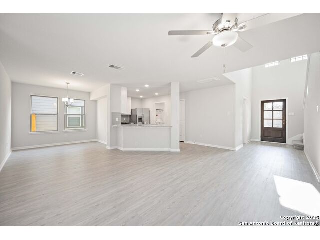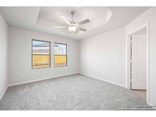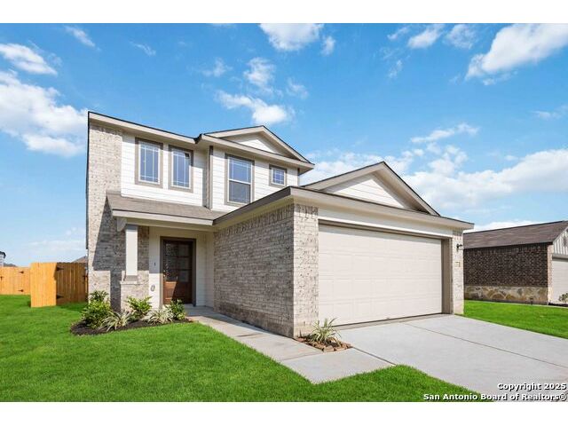 The Vail floorplan is a stylish and functional four-bedroom, two-and-a-half bath home located on a greenbelt lot. The open living and dining areas seamlessly flow into the kitchen, creating a welcoming atmosphere for gatherings. The generously sized owner's suite features an ensuite bathroom for a private retreat, while the upstairs gameroom offers additional space for recreation and relaxation. To enhance your outdoor living experience, an added covered back patio provides a comfortable and shaded area away from the summer sun. Photos are representative.