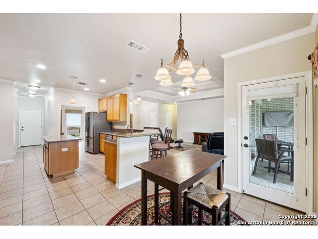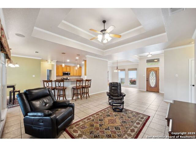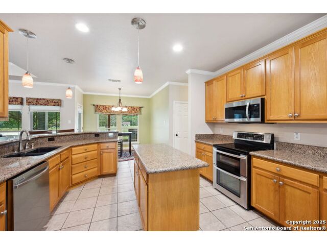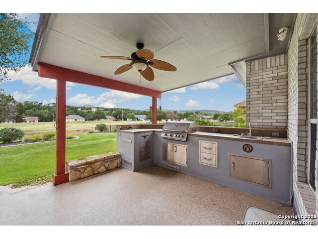 Welcome to Shayla Lane in Canyon Lake Texas. Nestled on a quiet, private street in the coveted Fairways at Canyon Lake, this beautifully maintained single-story home offers the perfect blend of comfort, convenience, and scenic Texas Hill Country living. With 3 bedrooms, 2 full bathrooms, and nearly 2,000 square feet of well-designed living space, this home backs directly to the golf course, offering peaceful views and a lifestyle that embraces outdoor enjoyment. Step inside to an open-concept layout featuring wood and tile flooring throughout, high ceilings, crown molding, and large windows that fill the space with natural light. The spacious island kitchen includes custom cabinetry, a built-in desk area, and three pantry closets, making it both functional and stylish for entertaining or everyday living. The owner's suite is thoughtfully positioned for privacy and features outside access to the covered patio, a large walk-in shower, walk in closet, and plenty of storage. But it's the outdoor living that truly sets this home apart. The covered back porch is your front-row seat to the lush fairways of Canyon Lake Golf Club, with open views of the surrounding Hill Country and the relaxing sound of nature all around. Whether you're sipping morning coffee,utilizing your incredible outdoor kitchen, or enjoying an evening sunset, this outdoor space invites peace and connection with the landscape. Located just minutes from FM 2673, this home offers easy access to all that Canyon Lake has to offer - boating, hiking, dining, and more. Whether you're looking for a full-time residence or a weekend retreat, 460 Shayla Lane delivers comfort, privacy, and timeless Hill Country charm.