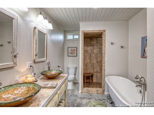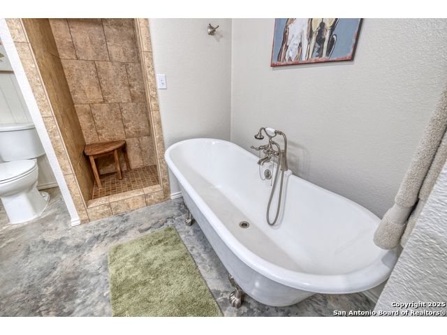 You can have your very own slice of heaven, at the end of a private road, beyond the gates. And all just 5 minutes outside of town. This hidden gem is truly one of a kind. This recently, tastefully renovated home sits on 18 acres, yes, 18 acres! The property boasts of mature oak trees, brush and wide open fields to jump in your utility vehicle and feed the deer. And there are a lot of deer! There is an 900 sq foot barn to store all your ranch equipment necessities. A shipping container that is equipped with water and power will convey with the property. There are two wells on site, one installed recently. The home has 3 bedrooms and 2 bathrooms, and a split floor plan. Master suite has its own recently renovated bathroom, walk in closet and laundry. The bright and open living space is perfect for entertaining with a large kitchen island. Stained concrete floors throughout the home are easy to maintain. Large covered carport will shield your vehicles or make a great patio. A storage unit is connected to the home and has a stand up attic and is the length of the house. The back yard is fenced in sections for pets or livestock. This is just to name a few of the highlights of this fantastic home.