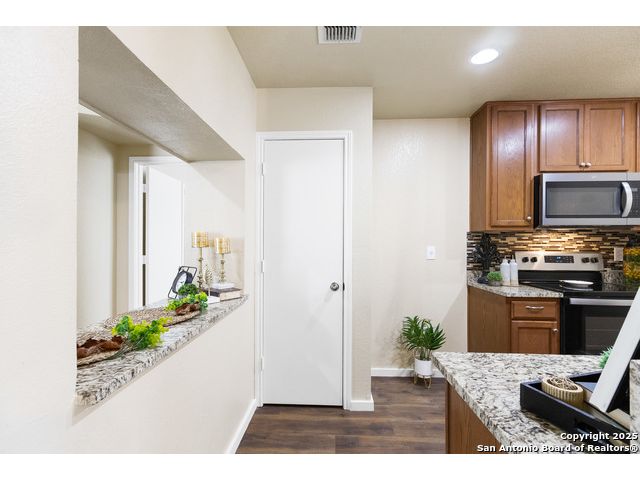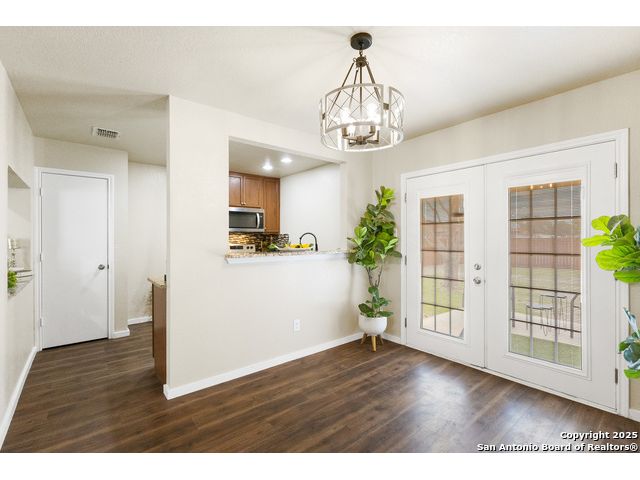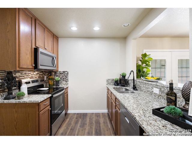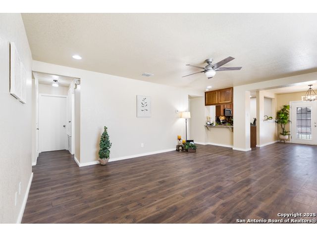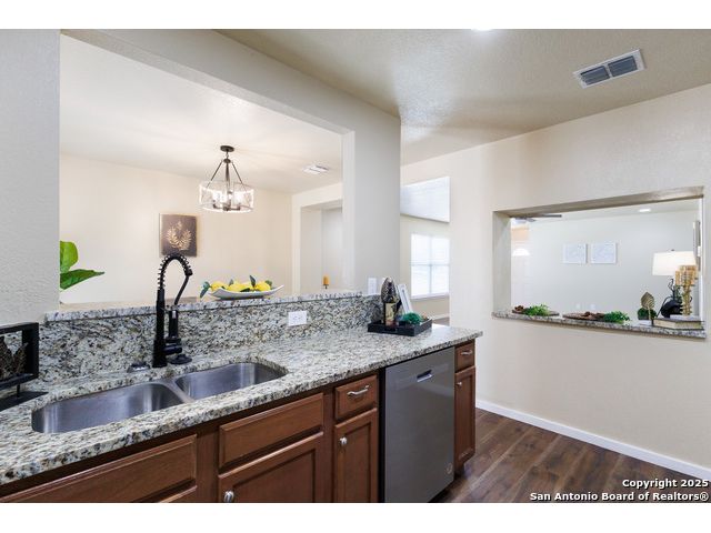 Tucked on a spacious corner lot in the thriving west San Antonio corridor, this 3-bedroom, 2-bathroom home is move-in ready and filled with thoughtful updates. The bright and airy interior showcases a well-maintained layout ideal for everyday comfort and easy entertaining. A stylish kitchen overlooks the dining area and features granite countertops, stainless steel appliances, and a custom backsplash that adds a modern touch. The primary suite offers a peaceful retreat, complete with an upgraded en suite bathroom featuring sleek tile work and new fixtures. Additional bedrooms provide flexibility for household members, guests, or home office needs, while the second full bathroom has also been beautifully updated. Step outside to enjoy a quaint covered patio, perfect for relaxing evenings or weekend barbecues. Located near Fisher Elementary, Lackland AFB, and major routes like Loop 1604 and Highway 90, this home delivers both convenience and community. With HEB, shopping, and dining options just minutes away, and positioned in one of San Antonio's fastest-growing areas, this property offers incredible value and comfort.