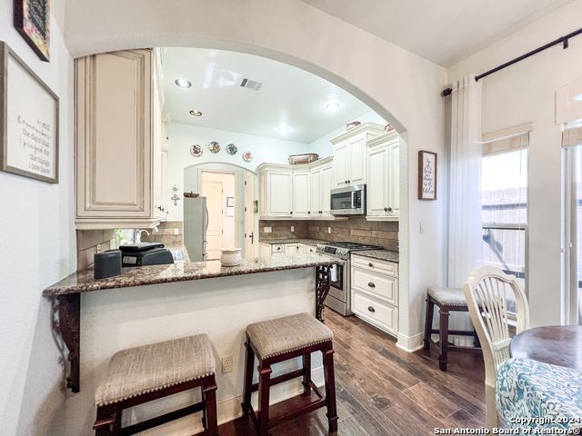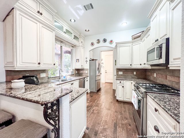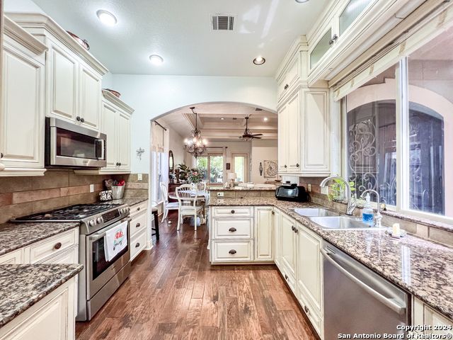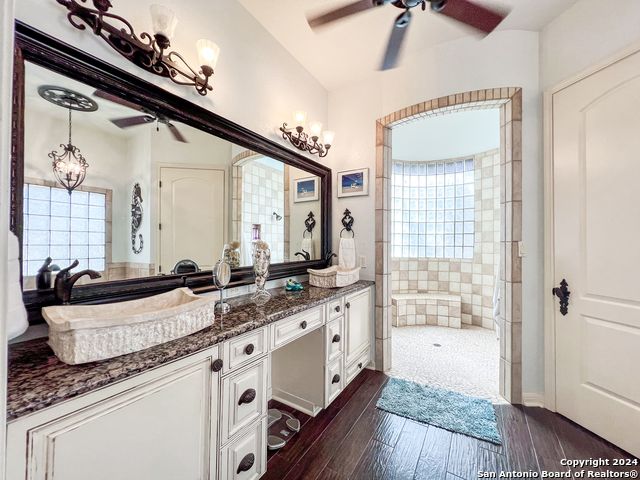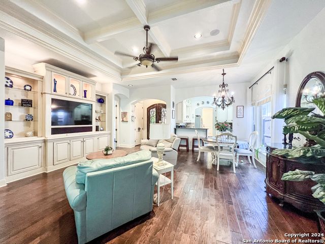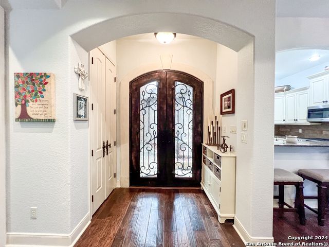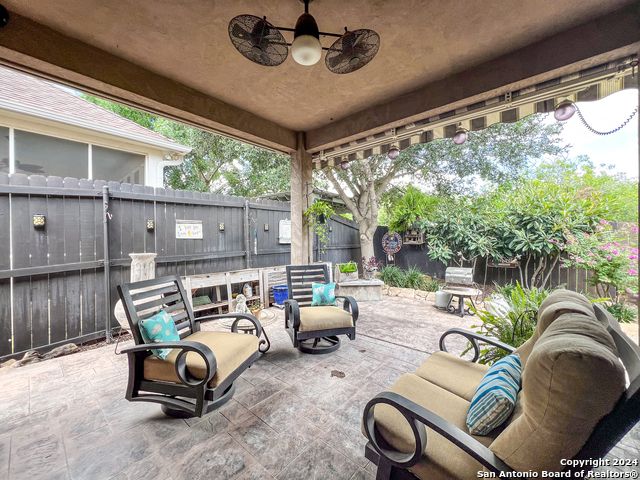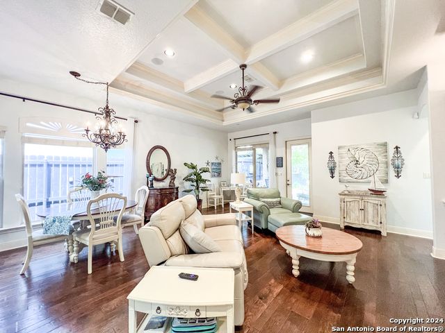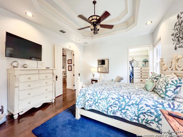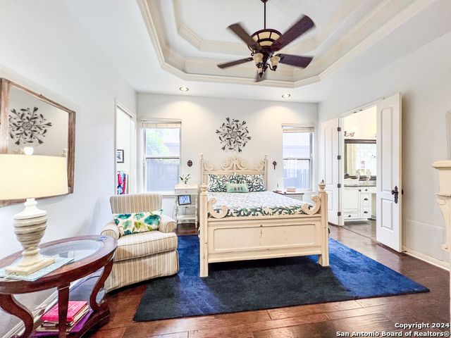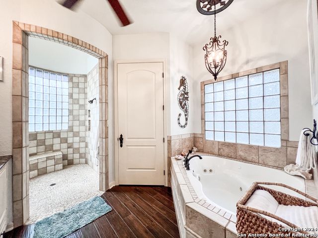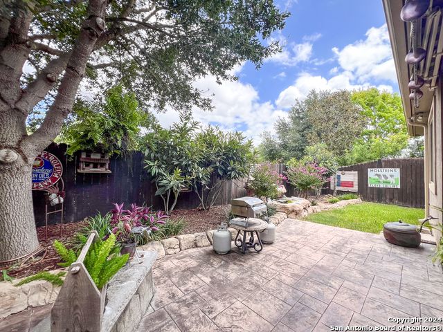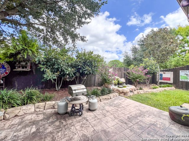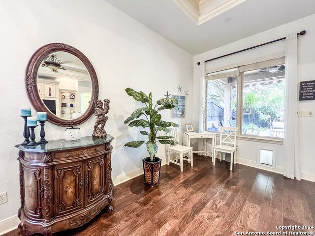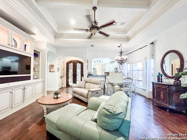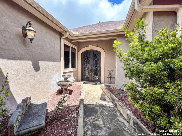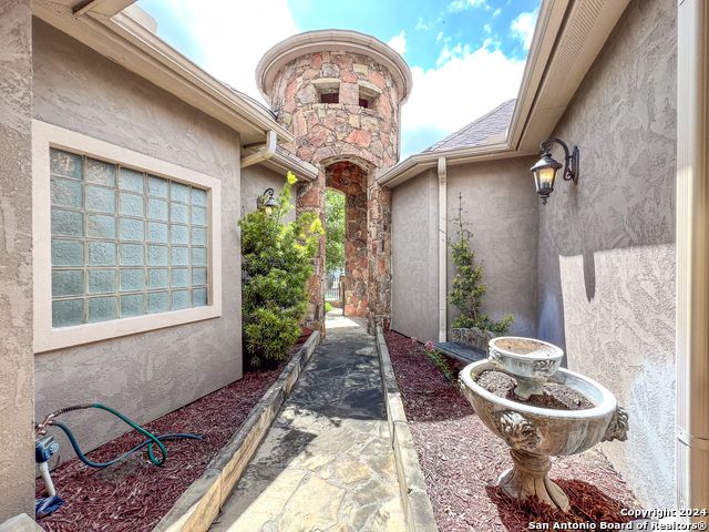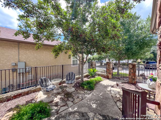 HUGE PRICE REDUCTION! A beautiful Mediterranean Style Villa garden home built by Parker Distinguished Homes. The craftsmanship and many upgrades of this home are tremendous and definitely built to impress. This home is centrally located in the gated community of Providence Place. You and guests will enter the home via the courtyard while admiring the beautiful turret. You are met at the entrance by custom double front glass doors, that open fully to enjoy the fresh air. This open floor plan is exceptionally inviting. This beautifully maintained residence features tile floors in the wet areas and all-natural wood throughout, creating a warm and inviting atmosphere. The primary bedroom boasts coffered ceilings with recessed lighting, adding a touch of elegance, while the private retreat bath offers a garden jet tub for relaxing soaks. Circular walk-in shower with multiple body shower heads and built in stool, His and her vanities with a knee space vanity provide convenience and comfort. Interior doors are solid wood and stand tall at 7 feet, enhancing the home's quality and character. The living room is bright and airy, with picture windows fitted with tint that overlook the lush back garden. Step outside into your private oasis, featuring a garden of fruit trees, shade trees, a tranquil pond, and a canopy providing ample shade-perfect for outdoor relaxing and entertaining. This home combines luxurious details with charming outdoor spaces, just waiting for it's next owner.