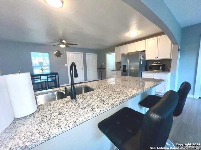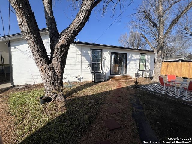 Welcome to this updated beautiful home in SE San Antonio with lots of mature trees with lots of shade for your social outdoor gatherings. Owner has added a NEW fence in backyard for privacy, home sits on a large size lot (.17)(62x125) which allows for additonal building opportunities in back yard/additional parking or entertaining space.Carport in front of the home for parking, new exterior paint, windows, roof, mini splits in each room to allow you the flexibiity to cool or warm any space you would like. New interior paint, granite counter tops, flooring and tiled showers. A detached 2 car garage with rear access. Garage can easily be turned into a casita if need to. Brooks City Base/Southtown/Downtown about a 5 minute drive. McCreless is walking distance for your shopping, dining,movie,banking, library,grocery shopping, university clinic needs, just to name a few. A must see! Thank you for your interest.