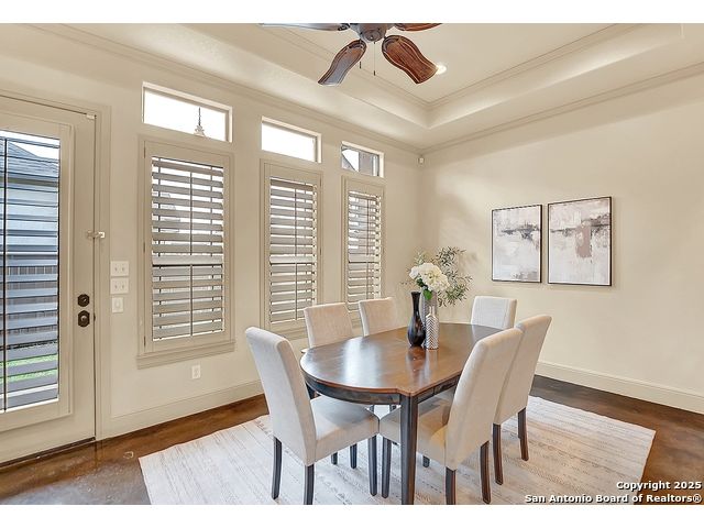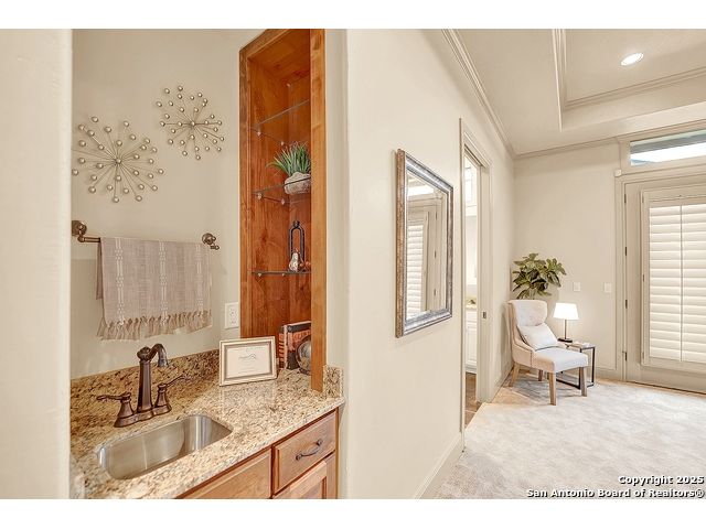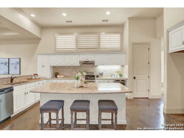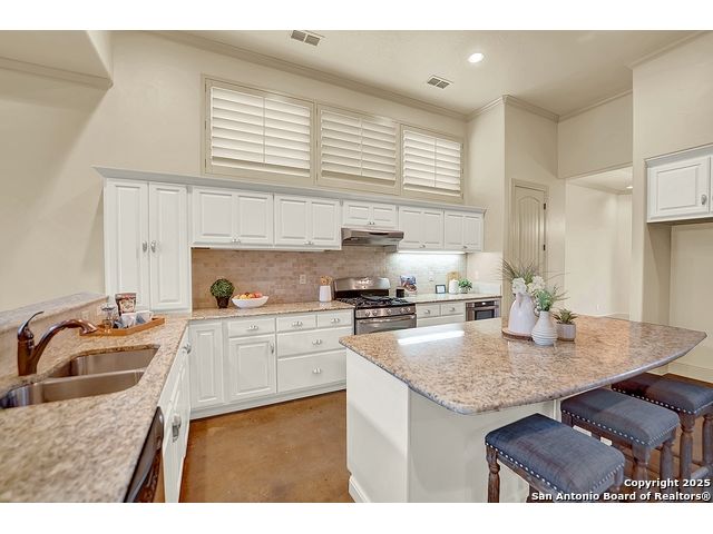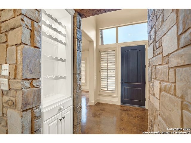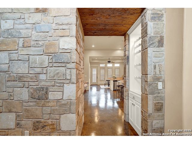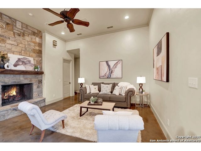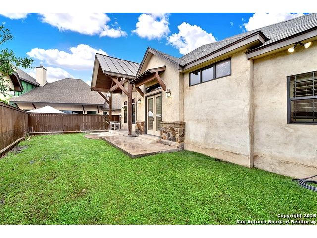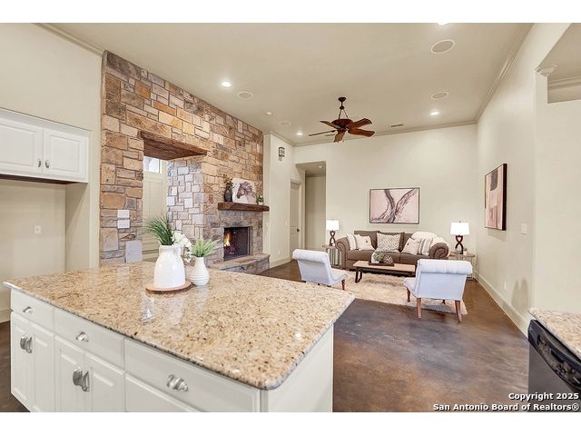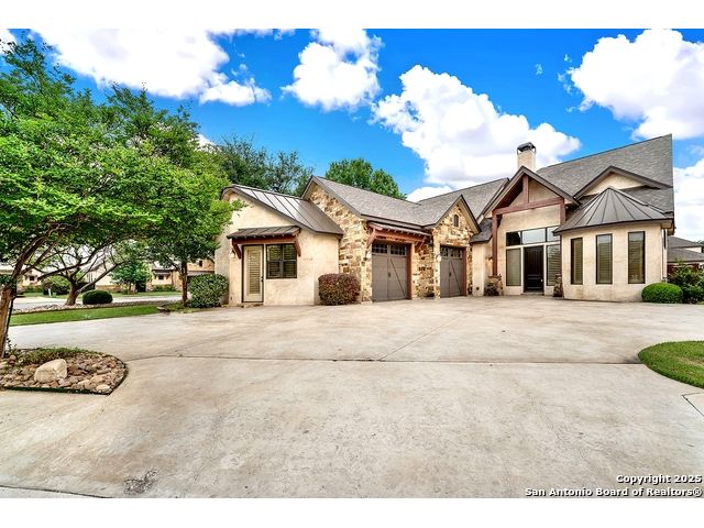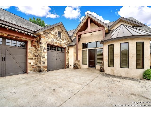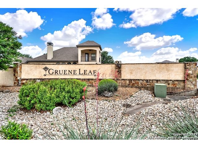 This beautiful home offers ample space for everyone! Located in the quaint neighborhood of Gruene Leaf. When you enter the home you are welcomed with beautiful finishes of natural stone, granite, and stained concrete floors. The fireplace gives a cozy feeling of warmth in the open living area with high ceilings. The design of the home is great when entertaining and the beautiful shuttered windows let you choose the mood. There are three bedrooms in the main house and a guest quarter just off of the 2 car garage space with its own entrance from the front of the home. This area can be used for guest, or as a home gym or office. There is an HOA which provides for the neighborhood park just steps away from the home where you can picnic and enjoy access to the tranquil river. You will be close to shopping and entertainment in this upscale, historic area of Gruene. Don't miss out on this one!