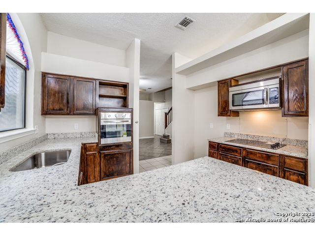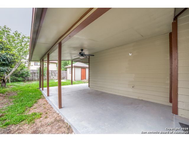 Owner Financing Available - Only 15-18% Down! Discover this beautifully updated home offering exceptional flexibility and an entertainer's dream backyard, located in the highly desirable and rapidly growing Far West Side of San Antonio. Nestled in a peaceful neighborhood that blends the charm of established homes with the appeal of newer construction, this residence perfectly balances character, comfort, and convenience. Inside, you'll find four spacious bedrooms plus a converted garage, offering endless possibilities for a fifth bedroom, home office, or private guest suite - complete with its own separate entrance. The soaring high ceilings on the main level create an impressive open feel, flooding the interior with natural light. Recent updates include brand-new carpet, granite countertops, and stainless steel appliances. A newer roof and HVAC system add to the home's value and peace of mind. Step outdoors and enjoy the ultimate entertaining space - an oversized covered patio perfect for BBQs, family gatherings, or quiet evenings at home. The large storage shed offers ample room for tools, lawn equipment, or hobbies. Ideally situated near Alamo Ranch and the 151 corridor, this property provides quick access to fine dining, shopping, Seaworld, and the Boeing Port Tech Center. Enjoy a serene suburban lifestyle while remaining close to all that San Antonio has to offer. With no HOA and convenient proximity to Lackland AFB, this home also presents a fantastic short-term rental or long-term investment opportunity. (Room sizes are approximate; please verify if important.)