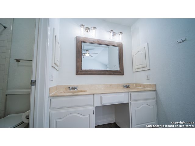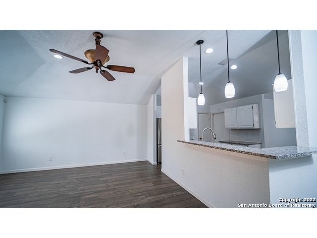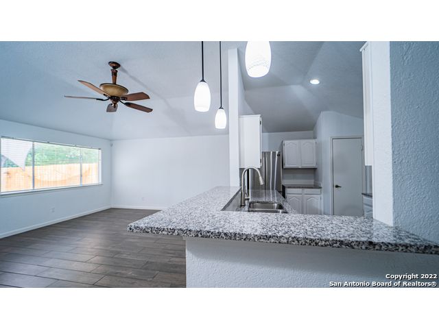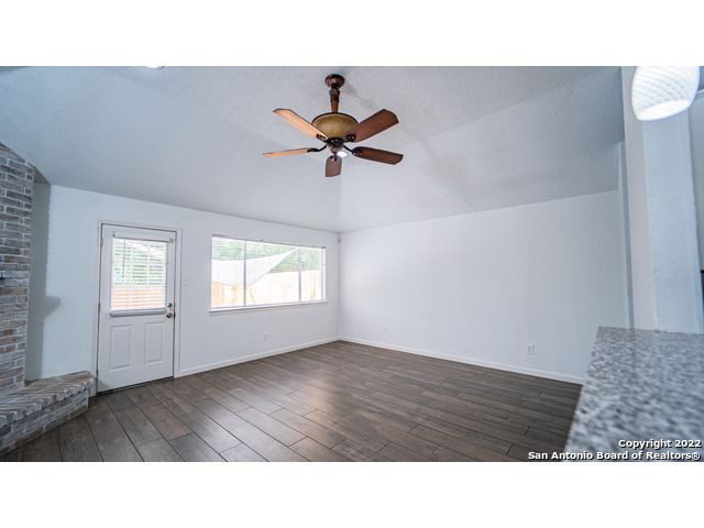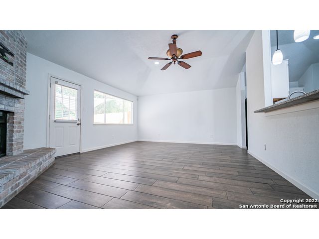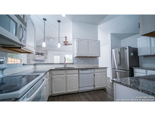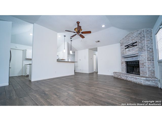 OPEN HOUSE - SAT 10/18 (1-3:30pm) Check our Virtual Tour!! **Fridge, washer, & dryer included ** Located in the greatly desired Great Northwest community with access to highly rated NISD schools & minutes away from Alamo Ranch shopping & major highways. This 1400 sqft single story home is situated in a well-established neighborhood with multiple mature oak trees and great curb appeal. Upon entering, you'll be greeted with an inviting open floorplan, extra high ceilings, tons of natural day light, a huge corner gas fireplace, and beautiful porcelain tile flooring that flows throughout the entire home. The kitchen overlooks the living room and is complimented with granite countertops, subway tile backsplash, pendant lighting, recessed lighting, a breakfast bar, undermount stainless steel sink, stainless steel fridge, abundant cabinet space, and access to the formal dining room. The master bedroom features a large living area with great natural light, high ceilings, generous walk-in closet, ceiling fan, and on-suite. Including, a dual vanity, his & her medicine cabinets, a large mirror, and great overhead lighting. Plus, tub & shower combo tiled from floor to ceiling. Both additional bedrooms offer comfortable living quarters, great natural day light, ceiling fans, & a well-appointed full bath to share. The outdoor living of this home offers a large patio with well sized yard, a new privacy fence, and backs to green space. Which is Ideal for those outdoor cookouts & gatherings. In addition, this move-in home includes a new water heater, fresh interior paint, a newer roof, & the ultimate amenity center. Including, an Olympic style pool with water slide, clubhouse, multiple tennis courts, basketball court, soccer field, & two sand volleyball courts!