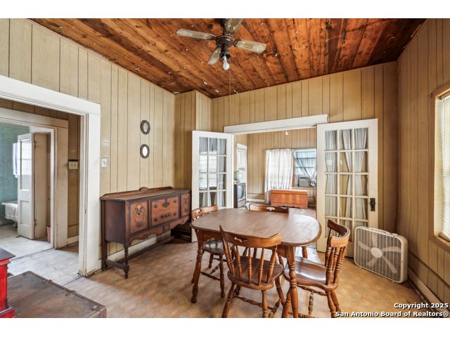 **Charming 1940s Corner-Lot Fixer Upper Near Downtown San Antonio** Situated on a 0.14-acre corner lot in an established neighborhood, this 2-bedroom, 1-bath home offers incredible potential for buyers or investors looking to restore its original charm. Highlights include a separate dining room, high ceilings, and wood flooring in select areas. Gas cooking is available in the kitchen, and the spacious layout presents a perfect canvas for creative updates. The backyard offers added appeal with mature growth around the perimeter, providing natural privacy and a peaceful outdoor setting. Nearby streets are currently being repaved, bringing a freshened-up look and added value to the area. Located near Elmendorf Lake, Our Lady of the Lake University, and Rosedale Park, this home is ideally positioned for both convenience and community. Don't miss the opportunity to bring this character-filled property back to life in a prime urban location.