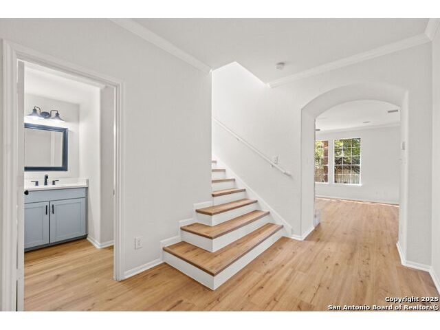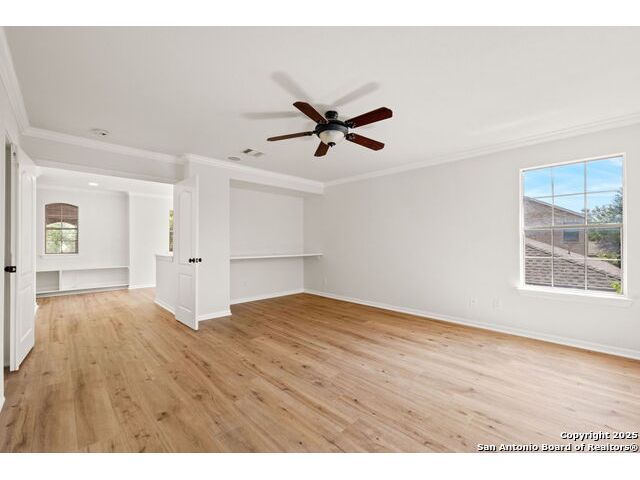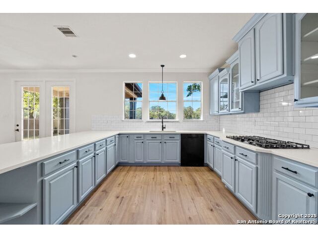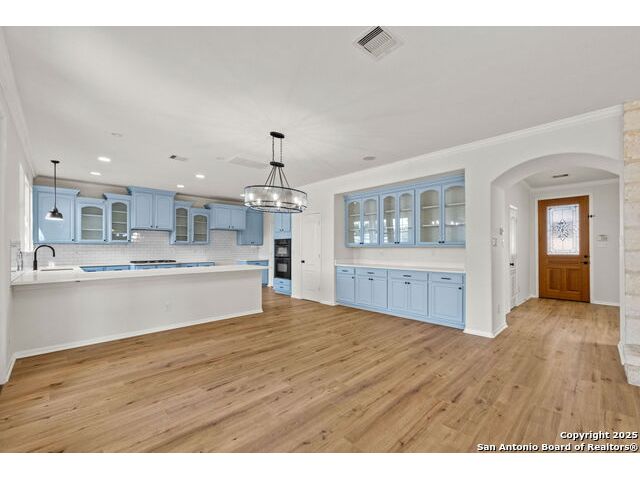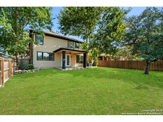 Discover this recently renovated and move-in ready home in the beautiful Trails of Herff Ranch community. Tucked away on a quiet cul-de-sac, it features fresh paint and luxury vinyl plank flooring throughout, creating a bright, open layout ideal for both relaxed living and entertaining. The kitchen shines with sleek quartz countertops and connects seamlessly to the dining and living spaces, making it the heart of the home. Step outside to a large, level yard with a full sprinkler system and a private, fenced backyard-perfect for children, pets, or evenings outdoors. Families will love the convenience of walking to Cibolo Creek Elementary, Champion High School, and neighborhood amenities-all within the top-rated Boerne ISD.