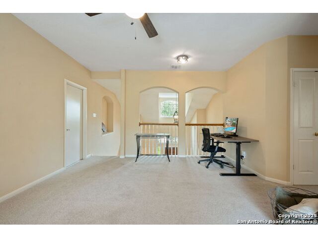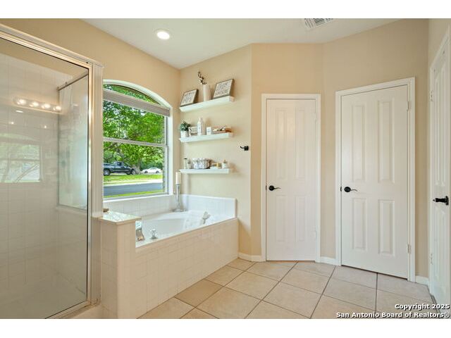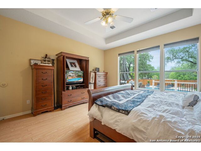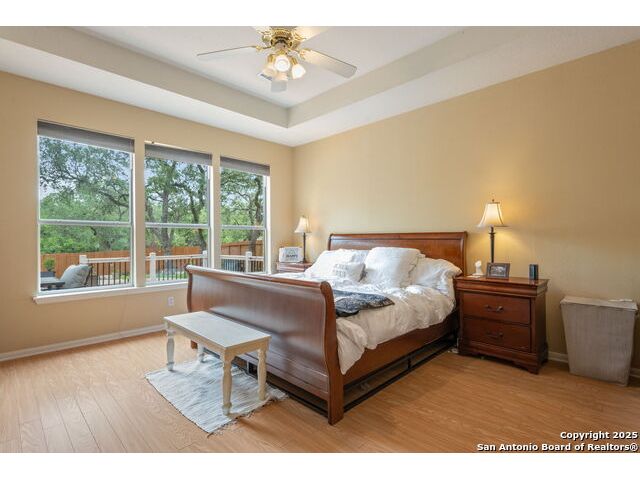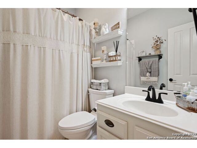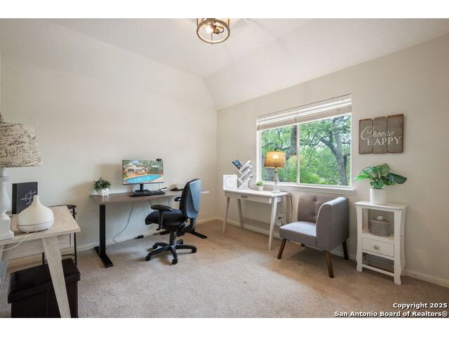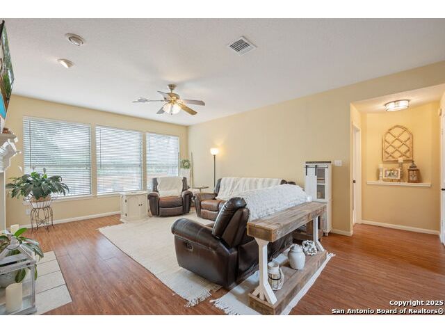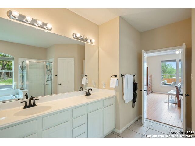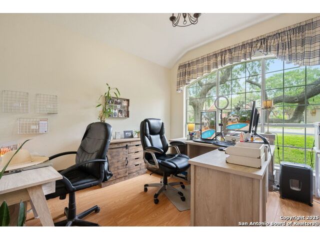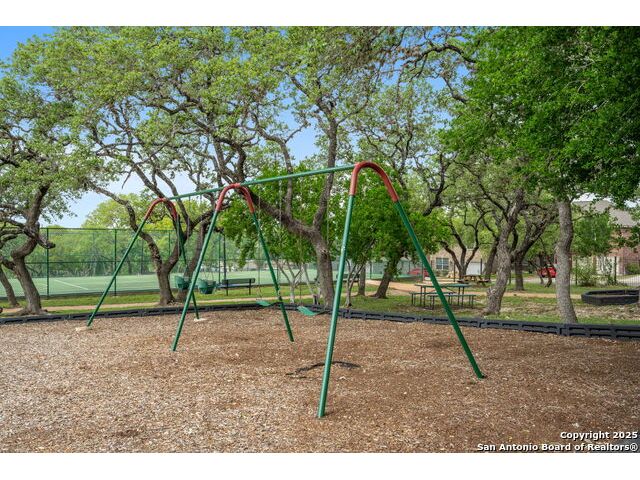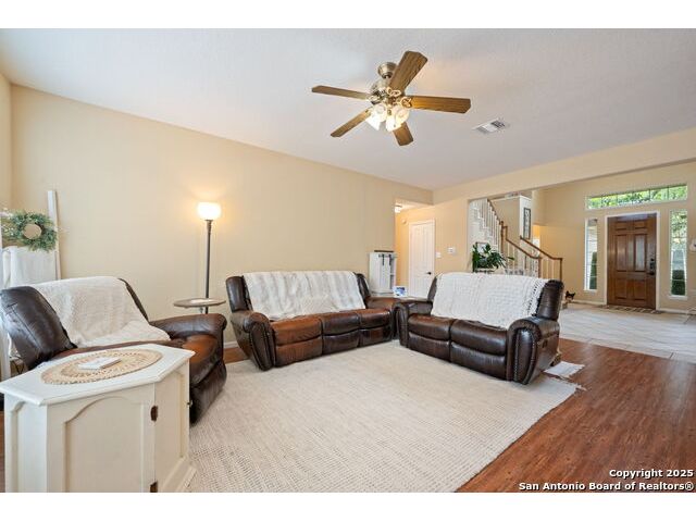 Experience resort-style living in this stunning home with a private inground pool, perfectly situated on a spacious corner lot within a serene, park-like cul-de-sac in the exclusive, gated community of The Fairways. Adjacent to the renowned 27-hole Hill Country Golf Club, this beautifully maintained 4-bedroom, 3-bath residence offers 2,702 sq ft of thoughtfully designed living space. Vaulted and 9-foot ceilings throughout create an open, airy feel, while multiple living and dining areas provide ideal spaces for both everyday living and entertaining. The inviting living room features a cozy gas fireplace, and the generously sized bedrooms include double walk-in closets and plenty of ample storage space. The primary suite is a true retreat with a spa-like garden tub and ample space to unwind. Enjoy peace of mind with recent updates including a new roof, both AC units, and a new water heater. Ideally located just minutes from premier golf, shopping, dining, and major highways-this home offers comfort, and convenience all in one. Located in Northside ISD. Welcome home!
