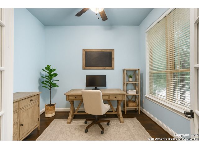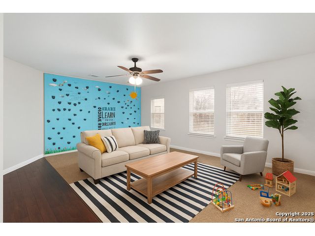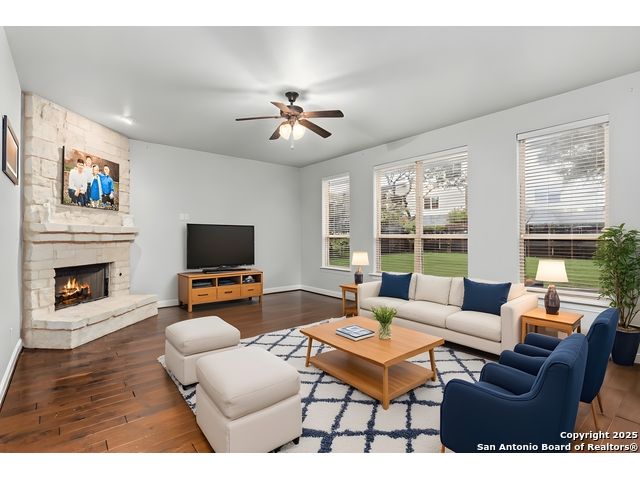 Energy efficient home with new high-end solar panel system (completely paid off) and TWO solar storage batteries, valued at $65k! Energy bills are practically nothing! Perfect for a large family, this spacious home features 5 beds/3.5 baths with beautiful wood floors upstairs and downstairs. Enjoy a downstairs mother-in-law suite, primary bedroom with oversized closet, formal dining room, dedicated home office, and large upstairs gameroom. Other energy-efficient perks include **2 new HVAC units**, **a tankless water heater** and new water softener. The extended back patio and fire pit are ideal for entertaining. Move-in ready with plenty of room to live, work, and play!