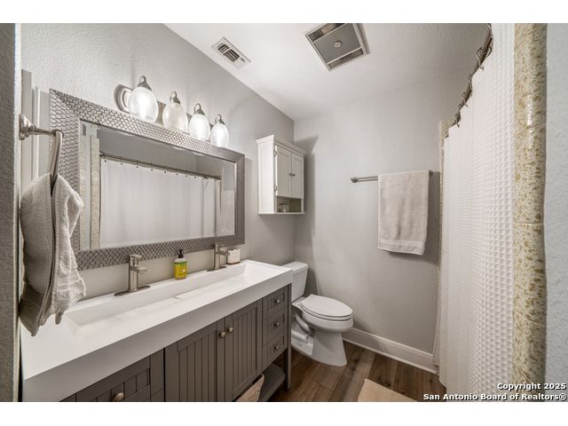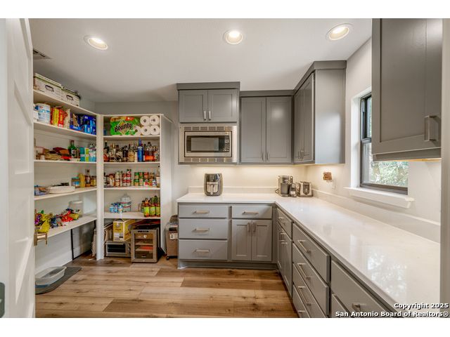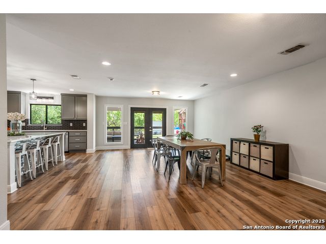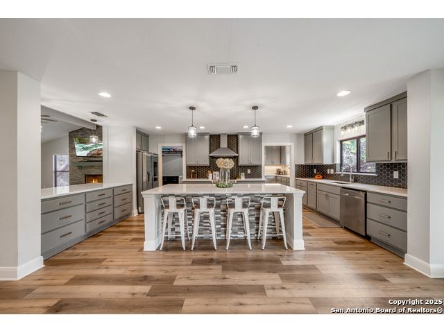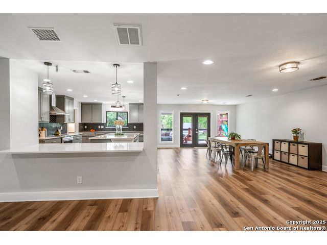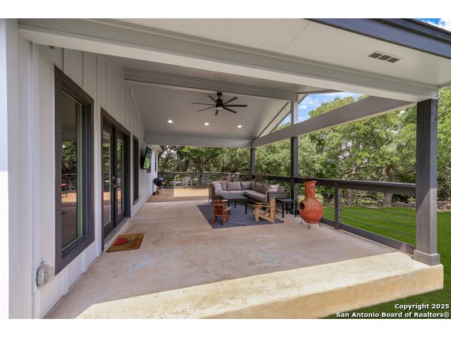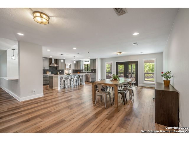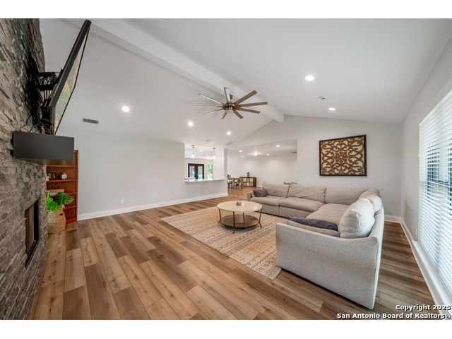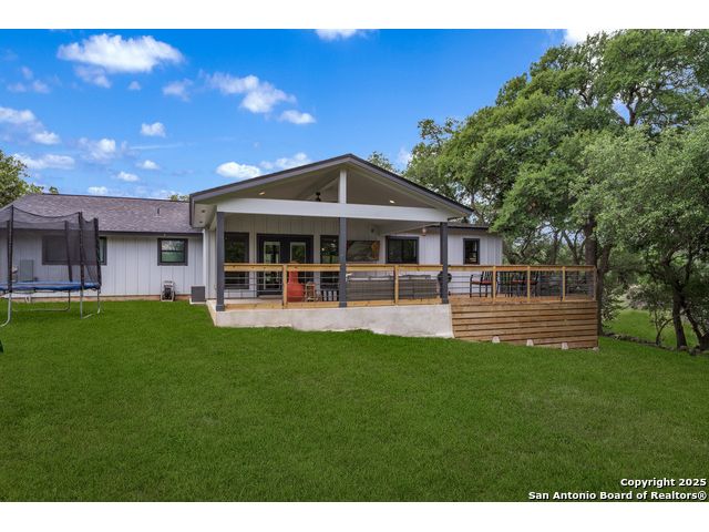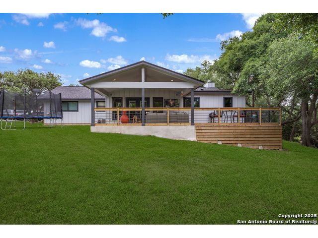 Seller financing available. 20% DP, 5% interest, amortization for 30 years with 7 year balloon. Located in the heart of the Texas Hill Country, this beautifully updated home in Boerne sits on nearly 5.5 fully fenced acres with a charming stone gate entrance and mature trees offering natural shade and privacy. Step onto the cozy front porch and into a spacious open floor plan filled with natural light and character. The family room features a stunning floor-to-ceiling stone fireplace. The kitchen is a standout, with custom cabinetry, white quartz countertops, a modern tile backsplash, large island, and an extended buffet-style built-in for added functionality. Just off the kitchen is a spacious walk-in butler pantry, complete with additional cabinetry, a microwave, and ample storage. An expansive dining area flows effortlessly to the outdoors through French doors, leading to a generous covered patio and extended deck-ideal for relaxing or entertaining. The backyard also includes a fire pit and a detached two-car garage. This is Hill Country living with style and comfort.