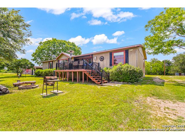Escape to your own slice of Texas paradise with this rare opportunity to own 20 unrestricted acres on a beautiful riverfront ranch with direct access to the San Antonio River! This well-kept 3-bedroom, 2-bath home is surrounded by mature trees and wide-open space, offering the perfect setting for peaceful country living. Enjoy quiet mornings and tranquil evenings from the front porch while watching the abundant wildlife pass through. Follow the hand-paved stone path down to the river's edge, where you can relax, take in the serene views, or fish for catfish and bass. Inside, the home features brand new flooring throughout, updated lighting, brand new energy-efficient windows, and new stainless appliances. A brand new water well and pump with a complete filtration system ensures fresh, reliable water. Deer feeder, security system, zero-turn mower, and game cameras are also included, adding both comfort and peace of mind. The property is also cross-fenced for cattle, making it ideal for agricultural use or livestock. ALL furniture and appliances convey, making this a turnkey opportunity ready for immediate enjoyment. The property carries an AG exemption and is ideally located between San Antonio and Corpus Christi, giving you the best of both city convenience and coastal charm. Whether you're seeking a private homestead or weekend retreat, this riverfront gem offers unmatched peace, comfort, and potential. Schedule your showing today!