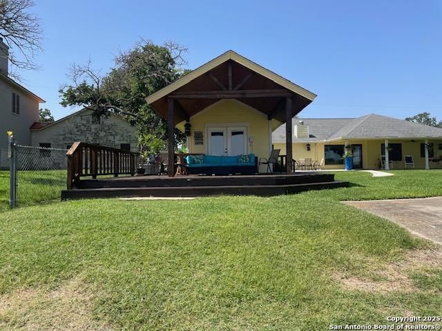 WATERFRONT Hill Country Oasis! Located on a quiet cove. Water is up and just steps away from the back door. Come on into this open floor plan with a large picture window showing the large cove of Lake Buchanan. Entertain a large group with the island kitchen and large peninsula, great for serving and preparing meals. Flow out to the covered back porch or the party deck and watch all the water sports and wildlife. Walk down to the lake to fish, swim, ski or paddle your afternoon away. The split floor plan gives your family or guest privacy with 2 bedrooms and hall bathroom on one side and your large master bedroom, with garden bathroom, large closet, and a study on the other side of the house. There is also an ADU with a one bedroom and bathroom for extra guest, family or can be long term rented for extra income. The property also has boat storage and extra storage next to the ADU and next to the deck. The lot across the street also conveys with the property. Come see what you have been missing!