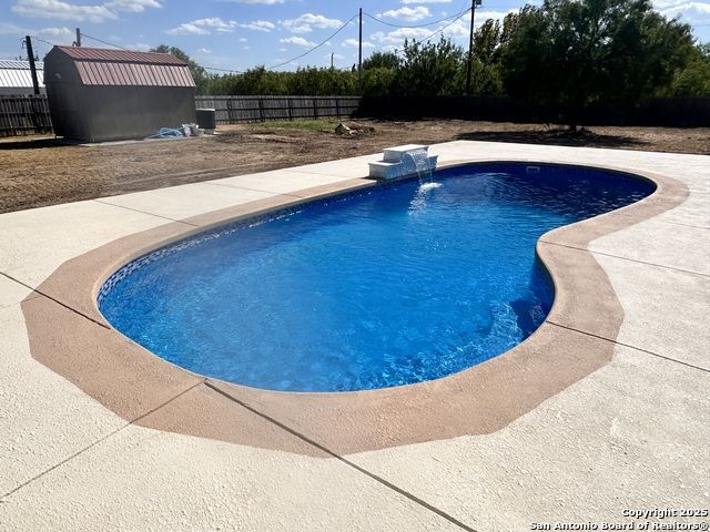 Modern Elegance Meets Peaceful Seclusion in Hacienda Estates! This stunning 3-bedroom, 2-bath modern contemporary, Mediterranean home sits on 1.04 acres and combines style, functionality, and comfort. Step inside to find granite countertops, two spacious pantries, an oversized study, and a primary bathroom with an oversized shower. A deadbolt-secured security closet adds peace of mind, while large windows flood the space with natural light. Outdoors, enjoy your newly built swimming pool featuring a heater/chiller system, LED lighting, and non-slip cool decking and sidewalk -ideal for relaxing or entertaining year-round. A storage shed offers space for your riding mower, and the two-car carport adds convenience. Surrounded by privacy and tucked away from traffic, this home is a rare gem in the sought-after Hacienda Estate.