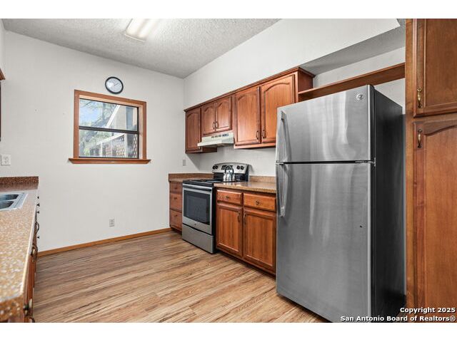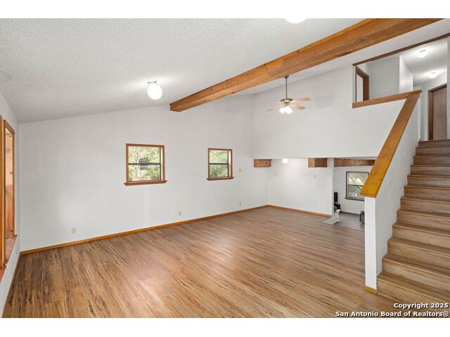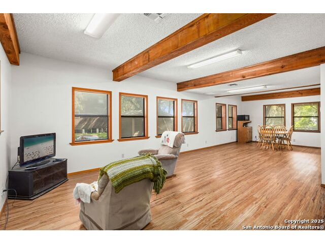 Nestled in Pebble Beach near the scenic shores of Medina Lake, this meticulously maintained three-level split home Sitting on a 1/3-acre offers both charm, and modern updates. With 3 spacious bedrooms, 2.5 baths, and an abundance of natural light, the home boasts vaulted ceilings accented by stunning wooden beams throughout. Enjoy one of the many decks around the home, including an outdoor mezzanine deck that provides ample space for relaxation, drinking coffee in the cool mornings, or sitting under the Texas starry sky in the evenings. The galley kitchen has stainless steel appliances, and granite countertops, and the refrigerator conveys. The property is perfect for outdoor living and entertaining and offers many serene spaces to enjoy the surrounding beauty. The home features numerous updates including; a new roof (2022), vinyl flooring (2020), and gutters, as well as a fresh coat of exterior paint (2024). The 2 air conditioners were replaced in 2022, and a new water softener was installed in 2024, alongside other maintenance items required for comfort and functionality. The water heater was updated in 2017 as well ensuring efficiency for years to come. The laundry room has extra pantry and coat space for extra storage as well. The basement includes a workshop with a bathroom already installed, offering the potential to transform it into an air-conditioned work space. This property is an ideal retreat for nature lovers, and those seeking a serene lifestyle. Don't miss your chance to own this rare gem!