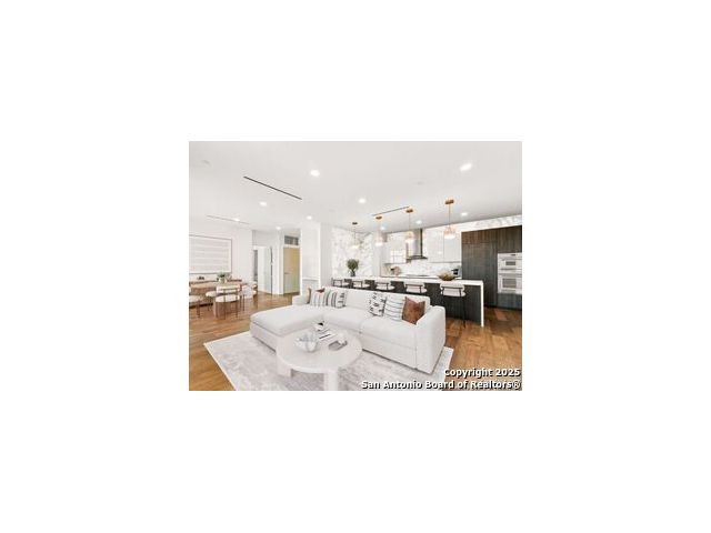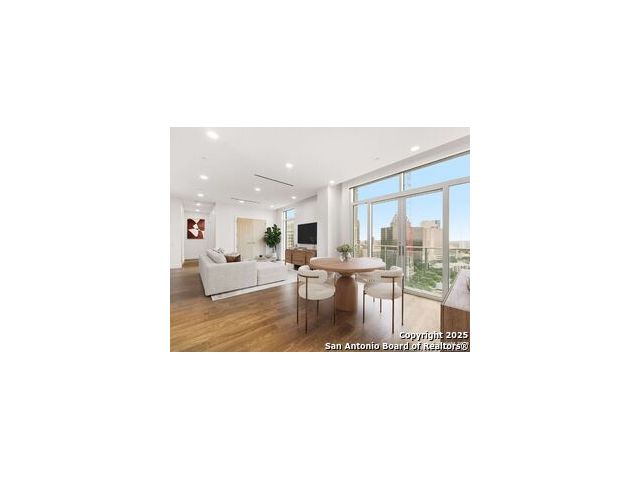 Welcome to elevated downtown living at its finest. Perched on the 13th floor above the renowned Thompson Hotel and quietly tucked along a tranquil stretch of San Antonio's iconic Riverwalk, this exceptional residence offers an unmatched blend of sophistication, comfort, and city convenience. With sweeping western-facing views of downtown San Antonio, this meticulously designed condo is bathed in natural light through dramatic floor-to-ceiling windows that frame both the vibrant cityscape and the peaceful waters of the Riverwalk below. The spacious floor plan includes two elegant bedrooms, a dedicated home office ideal for remote work or creative pursuits, and two and a half spa-inspired bathrooms. Every inch of this home has been thoughtfully customized with high-end finishes that exude modern luxury. The gourmet kitchen is a chef's dream, featuring top-of-the-line Thermador appliances, a gas cooktop, sleek Italian Pedini cabinetry, and refined designer touches that elevate everyday living and entertaining alike Step into a lifestyle of convenience and indulgence with full access to the Thompson Hotel's world-class amenities. Enjoy 24-hour concierge service, valet parking, and a resort-style pool with private cabanas and bar service, perfect for relaxing or hosting guests. Maintain your wellness routine with the state-of-the-art fitness center or unwind in the luxurious spa, complete with a steam room and sauna. When it comes to dining, the options are just as impressive. Savor riverside cuisine at LandRace, which also offers in-room dining for nights spent in, or head to The Moon's Daughters rooftop bar and restaurant for cocktails with panoramic skyline views. From impeccable interiors and breathtaking views to five-star services and unbeatable location, this is more than just a home-it's a lifestyle. Experience the height of downtown luxury in this extraordinary Riverwalk residence.