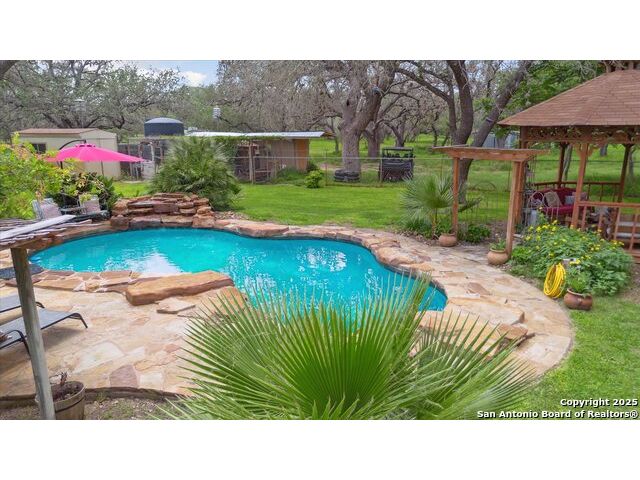Charming 3-Bed, 2-Bath Home on 5.87 Fully Fenced Acres with Pool, Barn & More! Welcome to your dream homestead! This beautifully maintained 3-bedroom, 2-bathroom home offers 2,011 sq ft of comfortable living space and sits on a fully fenced 5.872-acre lot - perfect for privacy, livestock, or outdoor enjoyment. Step inside to find a spacious, open-concept layout with an inviting kitchen featuring a center island, ideal for entertaining. Both bathrooms have been tastefully updated, and a durable metal roof adds peace of mind for years to come. Outdoors is where this property truly shines. Enjoy summer days by the in-ground pool, relax under the gazebo, or entertain on the large covered back patio. Additional features include a 2-car attached garage, a 2-car carport, a shed, a barn, and a chicken coop - making this a turnkey mini-farm setup. The irrigation system is linked to a private well, keeping your grounds lush and productive. Whether you're seeking a peaceful rural retreat or a functional property for animals and gardening, this home delivers it all. Don't miss your chance to own this rare piece of paradise!