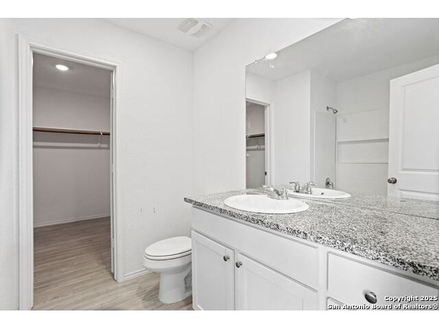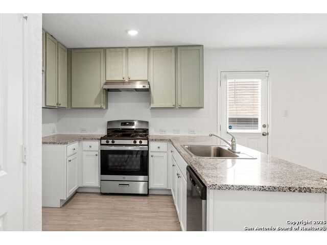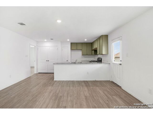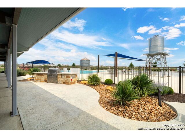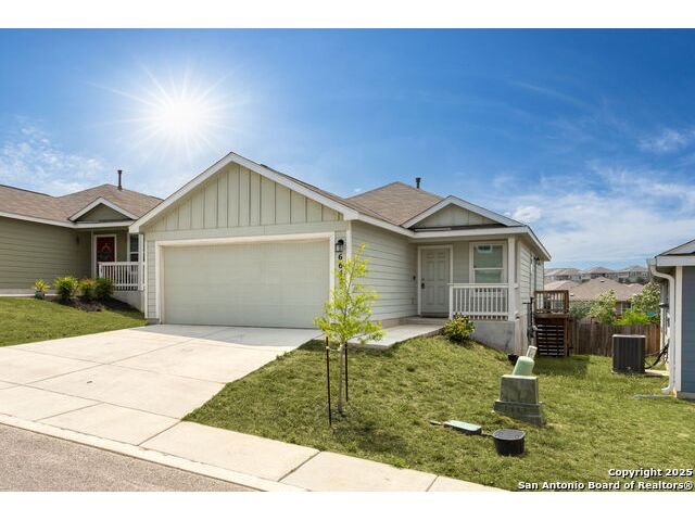 Built in 2022, this 3-bed, 2-bath single-story home offers an open layout with wood-look flooring, stainless steel appliances The spacious kitchen features a gas range and walk-in pantry. Enjoy a private owner's suite, 2-car garage, and a covered patio with sprinkler system. Located in the Silos community with access to a pool, park, playground, clubhouse, and 24-hour gym. Zoned to Medina Valley ISD with Silos Elementary opening soon! Low HOA and energy-efficient features make this home a smart move.
