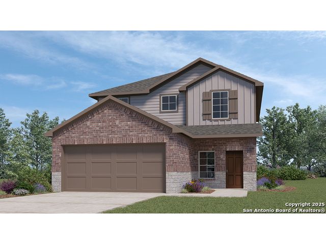 Step inside The Nicole plan, a two-story home featured at Winding Creek in New Braunfels, TX. Featuring 2 classic front exteriors, 4 bedrooms, 3 full baths and a 2-car garage, this floor plan is sure to turn heads. The Nicole offers 2473 square feet of comfortable living and includes a full bathroom and bedroom located right off the foyer that is perfect for guests. Continue down the hall to find an open concept plan with the family room opening to a gourmet kitchen and dining room. The kitchen includes quartz counter tops, stainless steel appliances, shaker style cabinetry and a spacious corner pantry. A kitchen island overlooks the living room and includes a deep, single basin sink and a breakfast bar, perfect for fast mornings on the go. The wide, inviting staircase leads to a spacious game room, utility room, main bedroom suite, two secondary bedrooms with carpet flooring and spacious closets and third full bathroom. Your private main bedroom features an attached ensuite bathroom built with plenty of storage space, a walk-in shower and a separate water closet for the toilet. The grand walk-in closet is a stand-out feature of The Nicole floor plan, complete with plenty of windows for natural lighting. Additional features of The Nicole include sheet vinyl flooring in entry, living room, and all wet areas, quartz counter tops in all bathrooms, and full yard landscaping and irrigation. This home includes our HOME IS CONNECTED base package. Using one central hub that talks to all the devices in your home, you can control the lights, thermostat and locks, all from your cellular device.