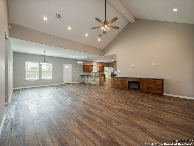 Welcome to this inviting 3-bedroom, 2.5-bathroom single-story home nestled on a generous 1.05-acre lot. With 2,184 square feet of living space, this vacant home is move-in ready and full of potential. Step inside to an open floor plan that seamlessly connects the living room, dining area, and kitchen - ideal for entertaining or everyday living. The living room features soaring ceilings, while the kitchen offers granite countertops, a breakfast bar, and ample space for gathering. The owners suite is a true retreat with a tray ceiling, spacious walk-in closet, and an ensuite bath complete with a jetted garden tub, separate walk-in shower, and single vanity. Unique to this property are two private office spaces accessible through the oversized side-entry 2-car garage, perfect for remote work, hobbies, or extra storage. Step out back to an oversized covered patio that opens to a large, fully insulated workshop - great for projects, equipment, or additional entertainment space. The backyard also includes a dedicated recreation or entertainment area, making it easy to host friends and family or simply relax and enjoy your space. Don't miss this versatile property that combines comfort, functionality, and room to grow - all in a perfect setting.