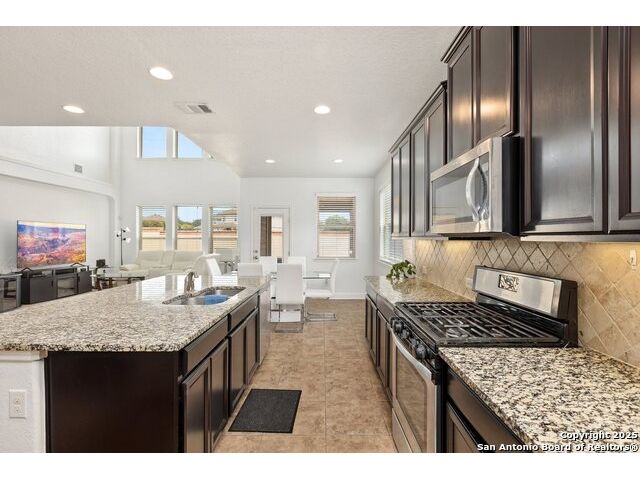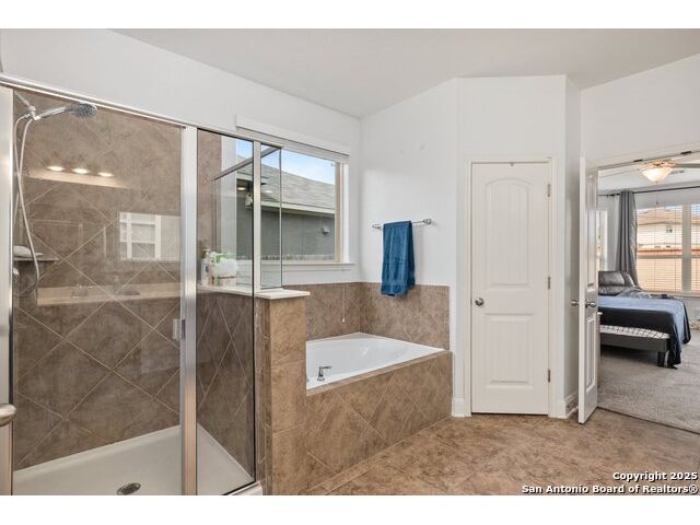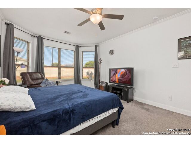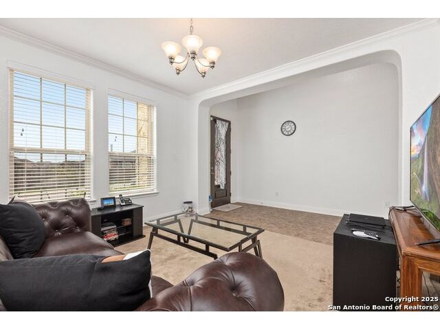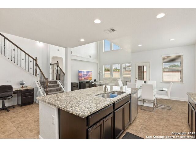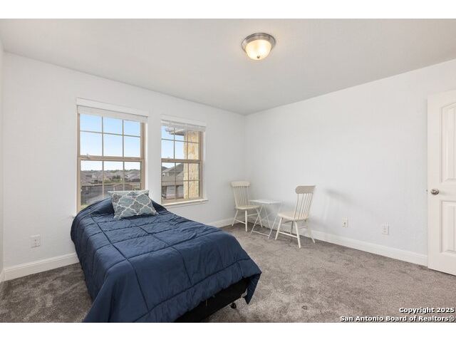 This beautiful two-story home is located in the Talis De Culebra community, known for its wide, spacious roads and ample guest parking. Residents of this neighborhood enjoy a wealth of amenities, including a magnificent swimming pool, sports courts, and more. Offering 4 bedrooms and 2.5 bathrooms, this home features a thoughtful layout designed for everyday comfort and functionality. Step inside to an open floor plan with high ceilings, neutral tones, and large windows that fill the home with natural light. The living room, highlighted by a wall of windows, flows seamlessly into the kitchen-creating a bright, welcoming space perfect for entertaining or relaxing. The kitchen is well-equipped with granite countertops, a breakfast bar, gas cooking, stainless steel appliances, and generous cabinet and counter space. A breakfast room and formal dining area provide flexible options for meals and gatherings. The primary suite, located on the first floor, includes a bay window sitting area and a spacious ensuite bath with a soaking tub and walk-in shower. Upstairs, you'll find all secondary bedrooms, a versatile loft ideal for a second living area or game room, and a dedicated media room for movie nights or quiet downtime. Additional highlights include a three-car garage with both a garage door opener remote and a fully functional exterior wall-mounted garage door opener keypad, an underground irrigation system and a covered patio that opens to a large backyard lawn, perfect for outdoor enjoyment. Conveniently located near shopping, restaurants, and everyday amenities, with easy access to Loop 1604 and Highway 151. Schedule your private tour today and explore the potential this home has to offer!