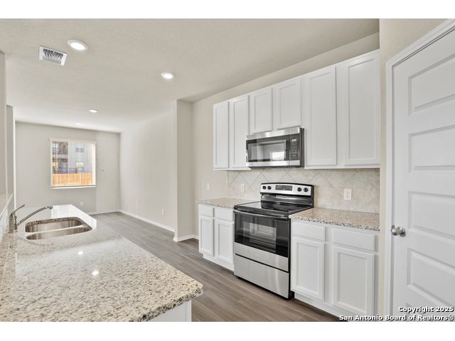 Love where you live in Melissa Ranch in San Antonio, TX! The Emerald floor plan is a spacious 2-story home with 4 bedrooms, 2.5 bathrooms, game room, and a 2-car garage. The first floor offers the perfect entertainment space with vinyl plank flooring and a bar top kitchen overlooking both the dining area and expansive family room! The gourmet kitchen is sure to please with 42-inch cabinets and granite countertops! Upstairs offers a private retreat for all the bedrooms! The Owner's Suite features double sinks with granite countertops, a separate tub and shower, and a spacious walk-in closet! Don't miss your opportunity to call Melissa Ranch home, schedule a visit today!