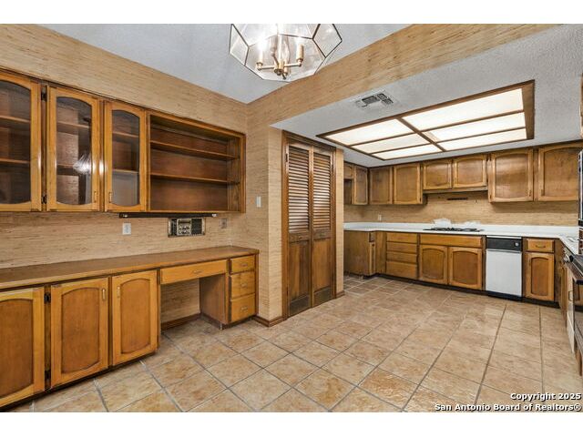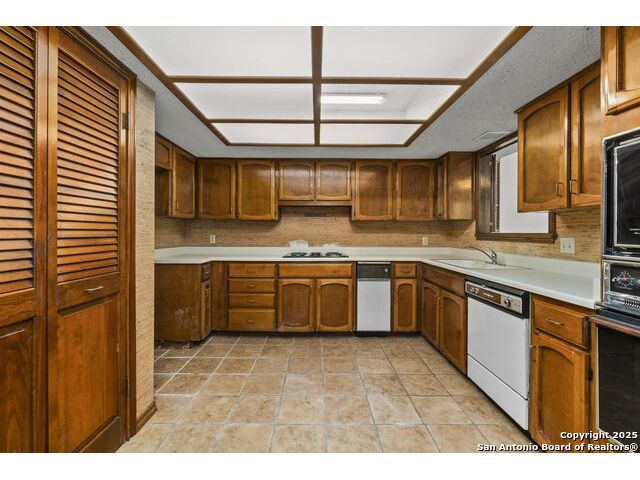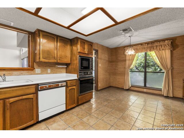 Great opportunity in Mission Trace! This spacious home is ready for new owners to bring their vision and remodeling ideas to life. With large rooms and two living areas, there's plenty of space to create the layout that works for your lifestyle. The main living area gets great natural light from the sliding doors and windows, offering a clear view of the backyard. There's a brick fireplace, built-in shelving, and high ceilings-a solid foundation for a future gathering space. The eat-in kitchen includes generous cabinet storage and an inlay cooktop-ready for updates but full of potential. Whether you're looking for a project or want to customize a home from the ground up, this property has the space and layout to make it happen.