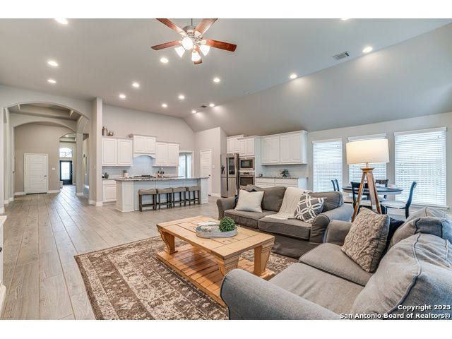 This immaculate single-story home shows better than new and is perfect for all seasons of life. Nestled in a friendly cul-de-sac within walking distance to the neighborhood catch-and-release pond, it combines charm, convenience, and comfort. Inside, you'll find four spacious bedrooms plus a dedicated office, with a chef's kitchen that flows seamlessly into the open-concept living area. Step outside to the beautiful lanai, complete with a mounted TV, and enjoy a low-maintenance yard designed for easy living. The community offers amenities that are second to none, providing an incredible lifestyle for all ages. Surrounded by shopping, restaurants, places of worship, and parks, this home offers the ideal blend of luxury, accessibility, and community. The one SPARKLES!