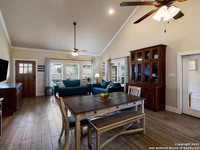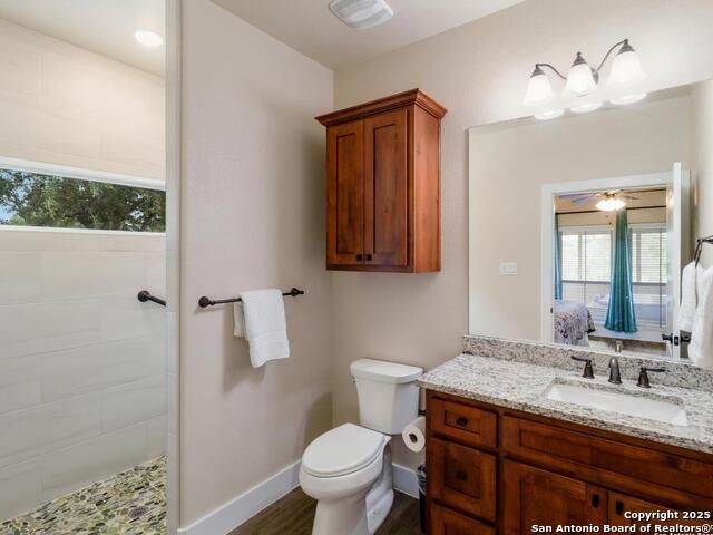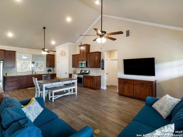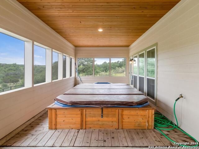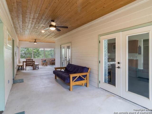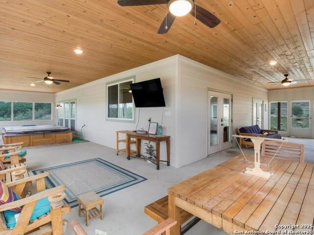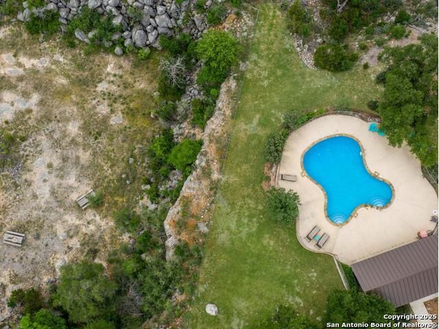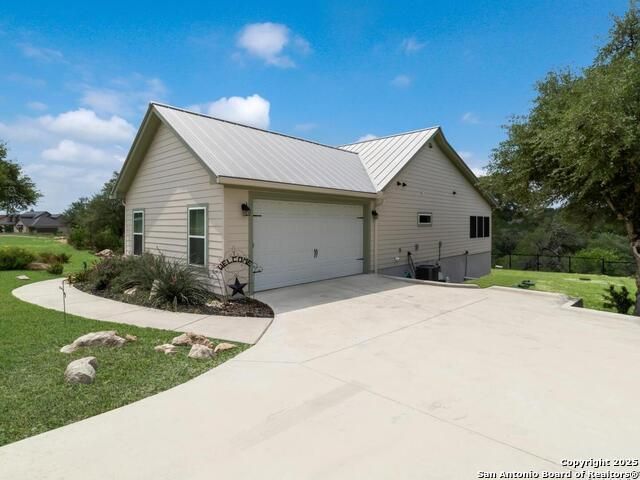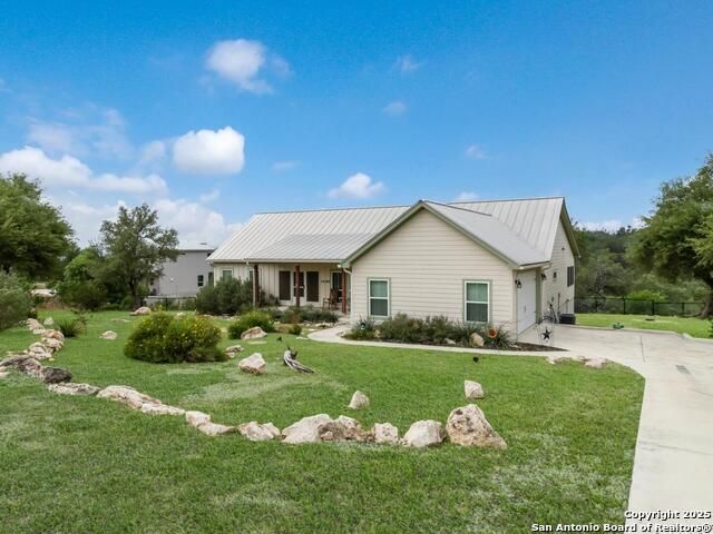 UNDER ROOF SQUARE FOOTAGE IS APPROX 2,460! This unique home built in 2019 has an awesome "Heated Swim Spa" on the oversized breezeway & is minutes from Canyon Lake at Potters Creek! SHORT-TERM RENTALS ARE ALLOWED, so could be a weekend home PLUS an investment opportunity! It stays rented most of the month. Home sits on 1.31 wooded & secluded acres near end of cul-de-sac w/ breathtaking views of the TX Hill Country. ALL appliances, furniture, furnishings & decor currently in the home can convey with sale. It's a split plan... 3 bedrooms, 3 full baths, 2 car side-entry garage, open floor plan to include approx. 900+ square feet of enclosed breezeway. The owner's suite & main living areas are separate from the secondary bedrooms, both w/full in-suite baths & a private entrance. Amenities include a metal roof, solar panels (owned), heated swim spa, electric car charger in garage, gas cooking, no carpet, water softener new April 2025, ceiling fans throughout PLUS there's a neighborhood pool just down the street to also enjoy! Don't miss the opportunity to make this house "YOUR" home.