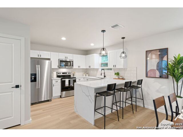 Welcome to 1108 S Gevers St, a beautifully built new construction home located in San Antonio's thriving Denver Heights neighborhood-just 5 minutes from downtown, 1.5 miles from the Alamodome, and a quick 10-minute drive to The Pearl. This 3-bedroom, 2.5-bathroom home offers 1,276 sq. ft. of thoughtfully designed living space with no HOA and sits near some of the city's most exciting redevelopment and cultural landmarks. Built with quality and attention to detail, this is not your typical builder-grade home-there's no carpet anywhere, only stylish, durable laminate flooring throughout. The open-concept main floor features recessed lighting, modern pendant fixtures, a sleek kitchen with beautiful countertops, and ample cabinet space-perfect for everyday living and entertaining. Upstairs, all three bedrooms boast high ceilings that create a spacious and airy feel. The primary suite includes a walk-in closet and a beautifully designed stand-up shower. Outside, the fenced backyard offers a blank canvas ready for your personal touch. This home is one of four newly constructed properties in this development, available individually or as a package-ideal for families, friends, or investors looking to purchase near downtown San Antonio. With its central location near the Alamodome, River Walk, Tower of the Americas, and more, 1108 S Gevers St delivers the ideal blend of quality, style, and convenience. Schedule your private showing today!
