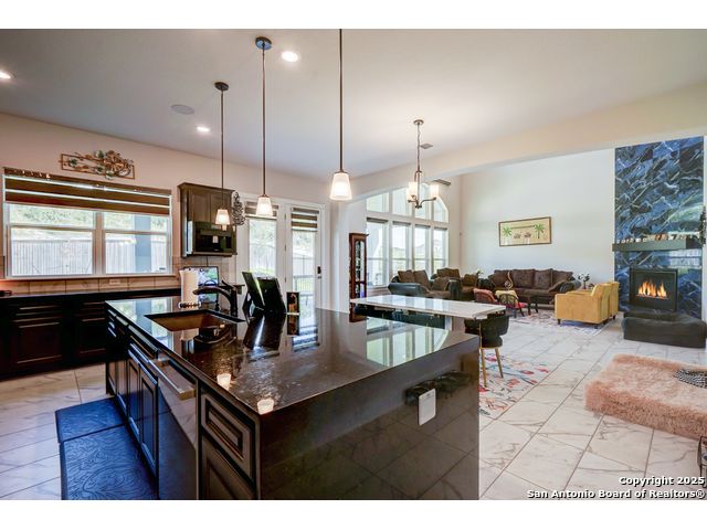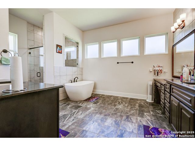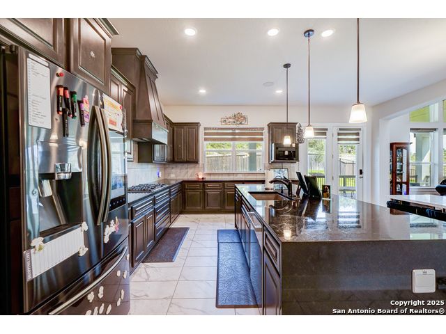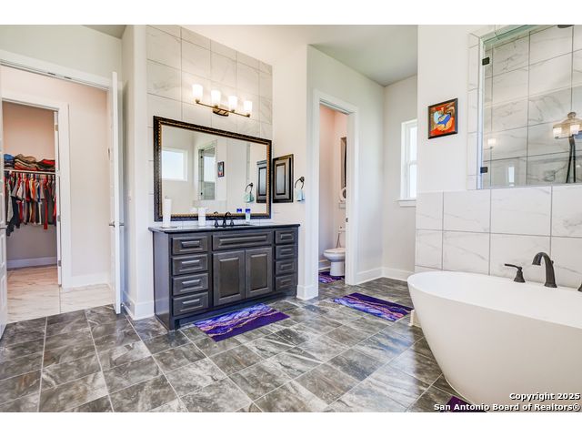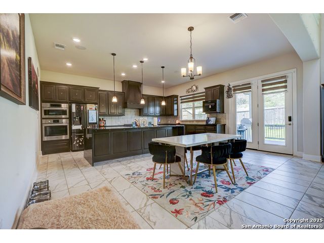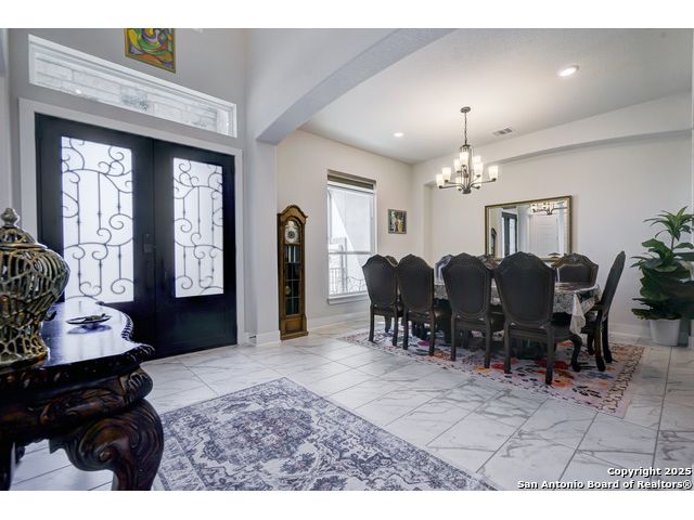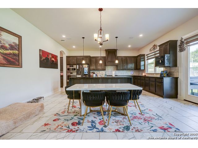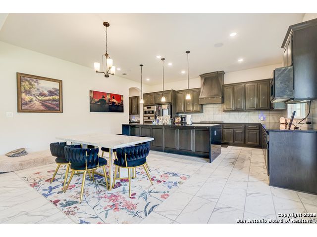 Step into refined living with this exquisitely upgraded 2024 Toll Brothers home, offering high-end finishes, smart home features, and a private setting with no front or rear neighbors. Designed for comfort and function, this spacious layout includes 4 bedrooms, 3 full baths, 2 half baths, a media room, and a game room-all crafted with premium detail and style. The first floor showcases sleek tile flooring, soaring ceilings, and an open-concept living space anchored by a chef's kitchen featuring a waterfall island, upgraded butler's pantry, under-cabinet lighting, and an in-built $5K Miele coffee machine. The primary suite and a guest bedroom with a private full bath are conveniently located on the main level. Smart upgrades abound-motorized zebra blinds, three Honeywell thermostats, full security wiring with cameras, built-in speakers throughout, and enhanced lighting. The 3.5-car epoxy garage, stained driveway, extended covered patio with an outdoor kitchen, and dedicated dog area make outdoor living just as luxurious. With every detail carefully completed and recently purchased in early 2025, this home is truly move-in ready-offering the perfect blend of elegance, privacy, and everyday ease.