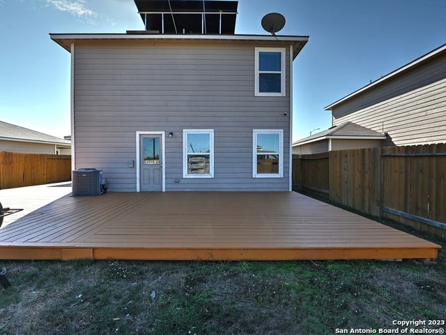 Welcome to this charming LGI home, a 3-bedroom, 2 1/2-bathroom, 2-story residence that is sure to impress. With its solar panels, you can enjoy the benefits of energy-efficient living while reducing your carbon footprint. The built-in water softener ensures clean and mineral-free water throughout the house. Step outside onto the large wood deck, perfect for hosting gatherings or simply enjoying some outdoor relaxation. The home offers a spacious backyard, providing plenty of room for gardening, playing, or