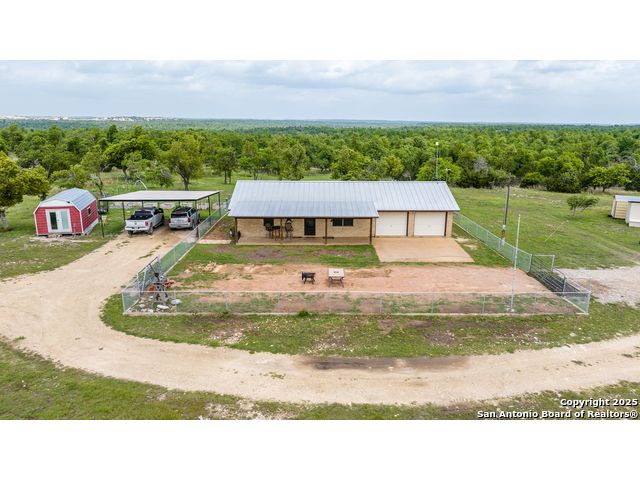 Escape to your own slice of Texas Hill Country paradise at 2050 Adj Ln, Fredericksburg, TX 78624. Set on 46.79 unrestricted acres, this charming 2-bedroom, 1.5-bath home offers 1,224 sq ft of comfortable living space, complete with new flooring, a durable standing seam metal roof, and brand-new Anlin windows just installed. Whether you're downsizing, looking for low-maintenance living, or planning to build your custom dream home, this property offers flexibility and potential. A two-car garage, pole barn, and additional outbuildings add useful storage and workspace. The gently rolling terrain, dotted with mature oaks and seasonal wildflowers, includes a natural draw that gives the land unique character. Wildlife is abundant-ideal for hunting or teaching kids the outdoor lifestyle. Located just 18 minutes from Marktplatz in downtown Fredericksburg, you're close to wineries, restaurants, and shops while enjoying privacy and views. 2050 Adj Ln is a rare opportunity in Fredericksburg real estate-don't miss your chance to own a piece of the Hill Country.