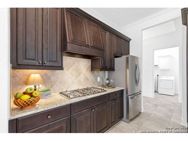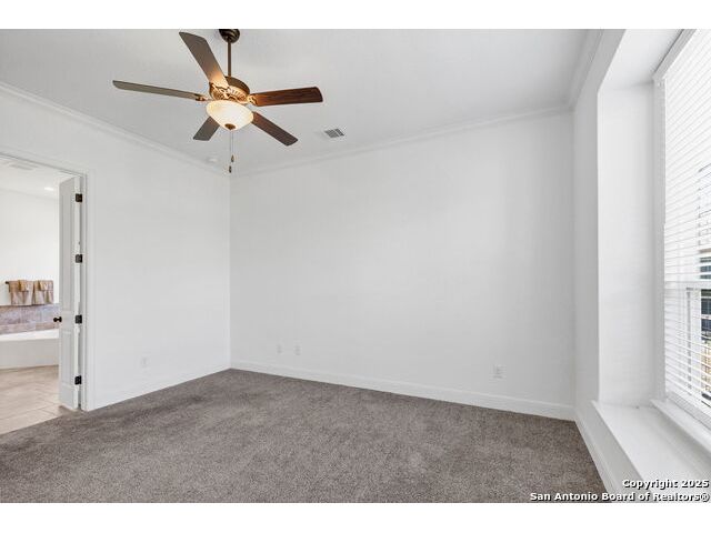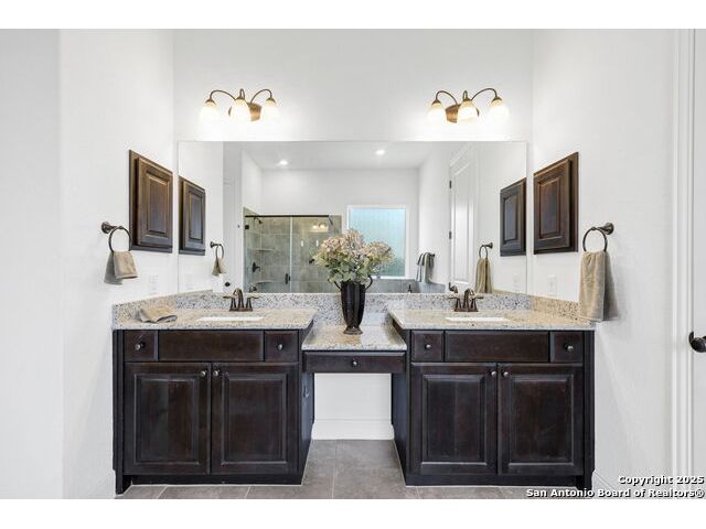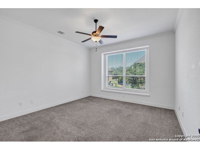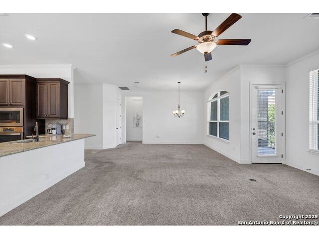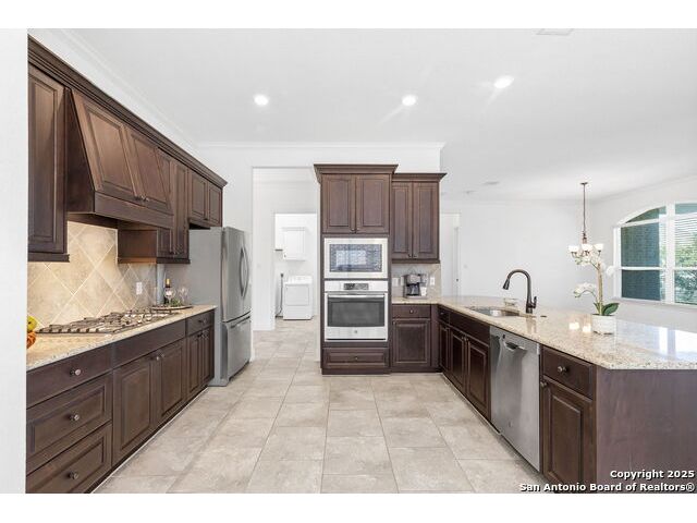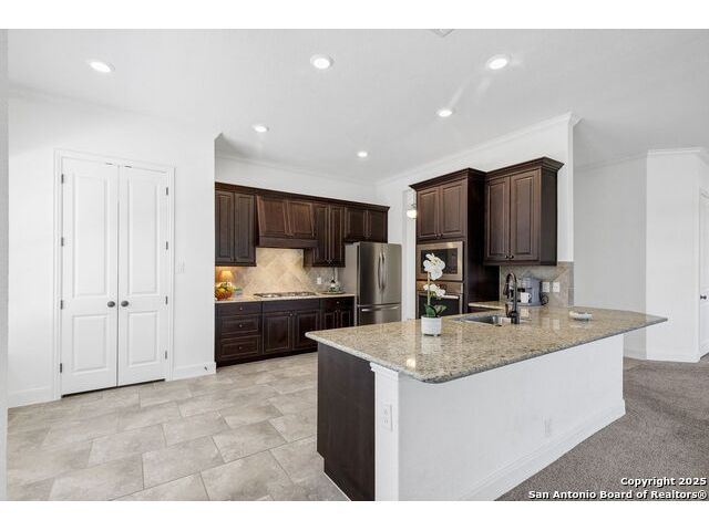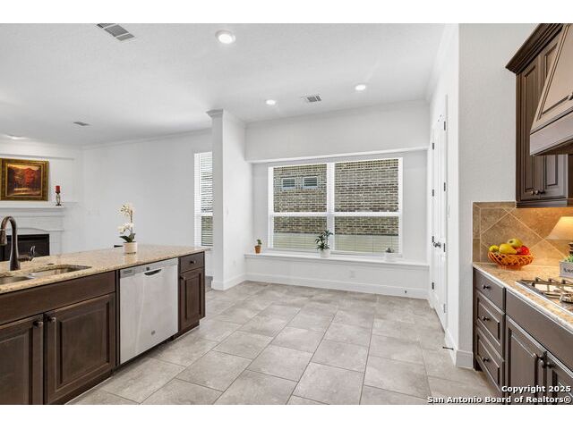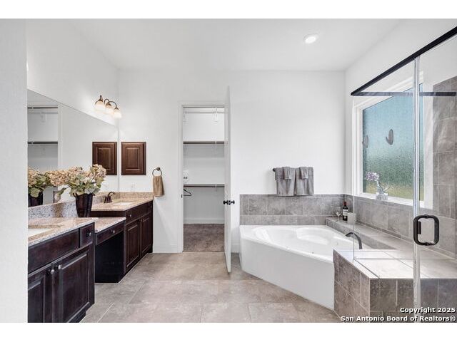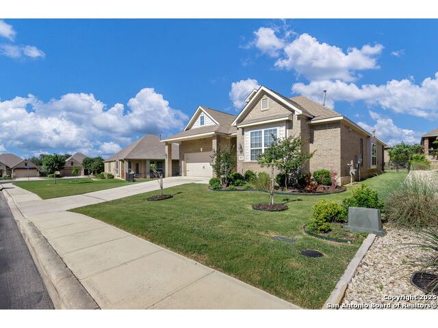 Here's your chance to own a truly elegant home at an affordable price. This 3 bedroom gem built by Village Builders has all the bells and whistles. Chefs kitchen features custom cabinetry, stainless appliances, gas cook top, and spacious pantry. Granite countertops throughout, 10 foot ceilings, generous crown molding, oversized laundry and open floor plan. The primary suite overlooks the back yard and features luxurious dual vanities, garden tub and separate shower, and did I mention the huge closet? The yard is spacious and landscaping is in great condition. The community resort features ballroom, meeting rooms, library, state of the art gym, indoor pool and spa, two outdoor pools and spa, pickle ball and much more. It's time to pack your bags and get ready to enjoy the good life at Del Webb San Antonio Hill Country Retreat!