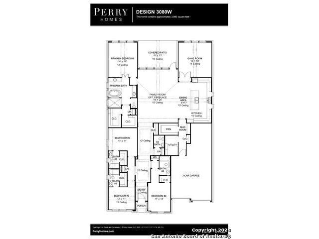 Step off the front porch into the extended entryway with a 12-foot rotunda ceiling. Off of the main hallway are two secondary bedrooms which offer full bathrooms and walk-in closets. Adjacent is a private guest suite featuring a full bathroom, walk-in closet and linen closet. As you enter into the vast family room you are greeted by a fireplace and wall of windows. French doors open into the game room which is located off of the dining area. The kitchen hosts an island with built-in seating, ample counterspace, and a walk-in pantry. The primary bedroom offers three large windows. The primary bathroom hosts dual vanities, a garden tub, large glass enclosed shower, and two walk-in closets. Covered backyard patio. The mud room and utility closet are off of the three-car garage.