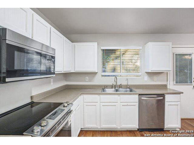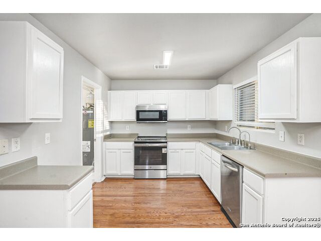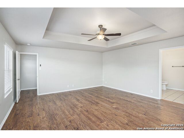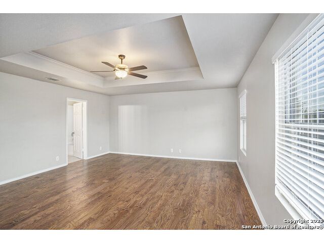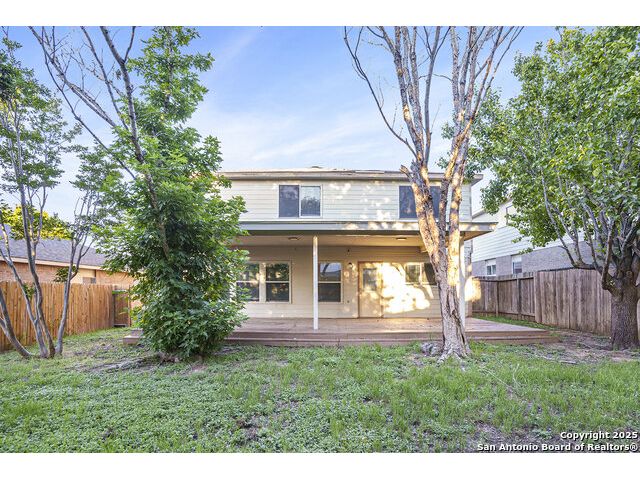 Four bedroom, two-and-a-half bathroom home in the Vistas of Westcreek! As you enter the home, is one of the 2 living spaces that provides the new homewoner with flexibilty. The kitchen overlooks the family room and features stainless steel appliances and the breakfast/dinging room - perfect for entertaining. All bedrooms are conveniently located upstairs with wood flooring, including the primary suite which boasts elegant tray ceilings, a large walk-in closet and luxe en-suite bath. Enjoy outdoor gatherings with a covered front porch and back patoo, as well as a fully fenced backyard with plenty of room to relax or activities. This move-in ready home is ideally located near shopping, Lackland AFB, SeaWorld, and a variety of restaurants. Schedule your showing today!