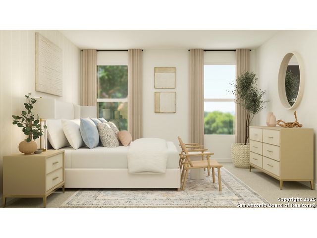 The Santana - This new single-story home offers a modern and low-maintenance design. Three secondary bedrooms are located near the front of the home near an inviting and spacious open-concept layout that blends the kitchen, living and dining areas. A nearby covered patio provides year-round outdoor entertaining. A convenient flex space is tucked away to the side of the home, while a luxurious owner's suite offers access to a full bathroom and walk-in closet. Prices and features may vary and are subject to change. Photos are for illustrative purposes only.