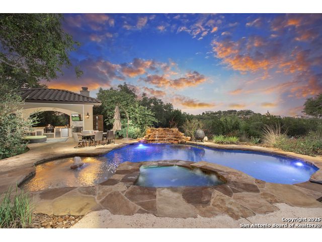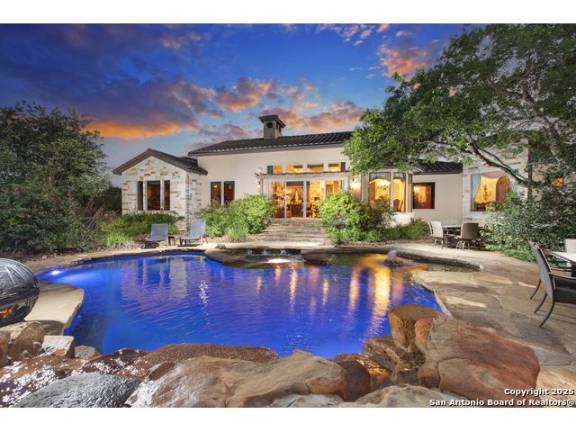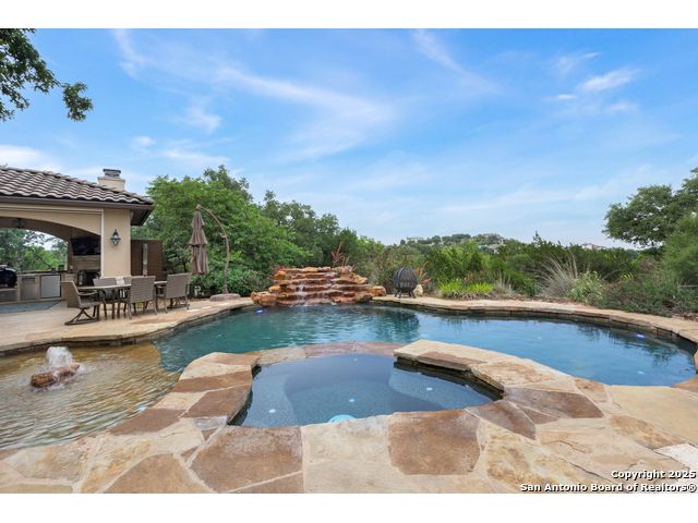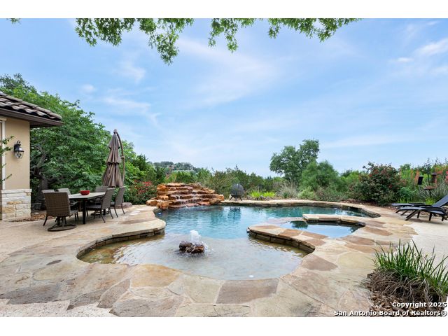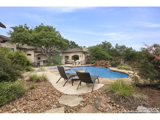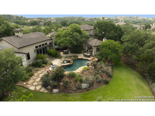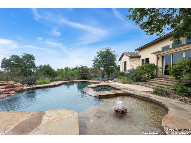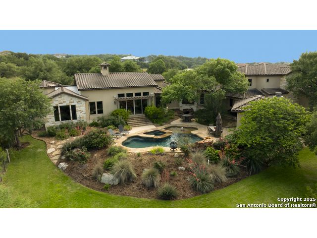 Don't Miss This Rare Gem Of More Than 4 Acres In Cordillera Ranch's Spectacular Clubs Village. The 4486 Square Foot Masterpiece Provides Miles Of Spectacular Hill Country Views While Maintaining The Privacy You Desire And Deserve. Awe-Inspiring From The First Step, You Are Immediately Greeted By A Stunning, Architecturally Designed Koi Pond That Flows Gracefully From Front Yard To Back, Running Beneath A Striking Glass Entryway. The Tranquil Site Of Beautiful Koi Swimming Beneath Your Feet Creates A Truly Unique And Serene Ambiance That Will Flow Throughout The Home. Guided Along Hand Scraped Wood Floors, A Fabulous, Open Floor Plan Awaits You. A Masterful Design Where No Detail Was Overlooked And Each Custom Selection Was Carefully Created And Perfectly Planned. Allow The Sun's Natural Light To Brighten Your Days Through Expansive Windows, Or Take Advantage Of Remote Controlled Shades Throughout The Main Floor For A Darker, More Intimate Atmosphere. Whether Cooking A Quaint Dinner For Family Or Hosting A Grand Party, The Extraordinary Chef's Kitchen Has Everything You Need. Wood Mode Knotty Alder Cabinets, Stone, And Granite Mix Beautifully For An Impressive Aesthetic. For Functionality, This One Is Unmatched. A Thermador Appliance Package Includes Six Burner Gas Stove With Built-In Griddle, Two Convection Ovens, Steam Oven, and Warming Drawer. And A Turbo Chef Allows You To Cut Cooking Times To A Fraction When You Don't Have Time To Wait. Beyond The Kitchen, An Oversized Master Suite With Beautiful Views Of Its Own, With A Bath That Boasts A Spacious, Meticulously Designed Master Closet With Custom Built In Storage, Large Soaker Tub, Plus Walk-In Shower And Heated Floors. In A Separate Wing Of The Home Are Three Secondary Bedrooms, Each With Their Own Full Bath. One Sits On The Main Floor And Has Outdoor Access, Perfect For Elderly Parents Who Visit Or Stay. Two Additional Bedrooms Are Upstairs, Each With Plenty Of Space And A Large Walk-In Closet. The Family Can Enjoy Movie Nights Or Watching Your Favorite Teams On Game Nights In The Media Room Featuring A State Of The Art Epson Projector And Surround Sound. Storage Is Abundant Throughout The Home, With Upstairs Heated And Cooled Storage Room Plus An Oversized 3-Car Garage And Connected Storage Room With Specialty Shelving. For Dog Lovers, A Heated And Cooled Room Just For Your Four Legged Family Members, Leading To A Turfed Dog Run Outside. And The Outside! As Amazing As The Inside Of This Home Is, You Will Be Equally Impressed With The Breathtaking Outdoor Paradise That Awaits You. Gorgeous Natural Stone Heated Pool And Spa. Extravagant Outdoor Kitchen With Built In Blackstone, Primo Grill, Pizza Oven And Side Burners. Electric Shades That Protect You From Sun, Heat, And Anything Else You Don't Want In. Large TV And Ample Seating For As Few Or As Many As You Desire. All With Miles And Miles Of Spectacular Hill Country Views In An Extremely Private Setting. This One Is Special And Truly Has It All, Nestled Away In The Resort Style Cordillera Ranch Community. No City Taxes, Highly Rated Boerne Schools. Home Awaits You!