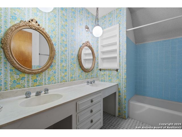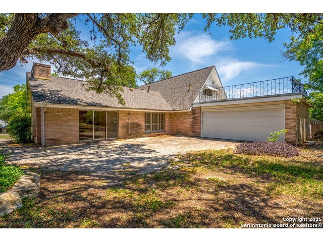 Mid Century home available for sale in Forest Oaks! So much potential in this property. Sitting at an extra large lot, this home is ready for it's glow up. Amply sized kitchen with tons of cabinet space. Large living area with fireplace as focal point. Gorgeous stained glass surrounds fireplace makes for a stunning feature. Primary bedroom downstairs with large walk in close and full bathroom. Additional bedroom on first floor and 2 bedrooms on second floor. Access to rooftop patio available from second floor. Filled with mature and shady trees, the backyard is ideal for entertaining. Great location with easy access to Loop 410, IH 10.