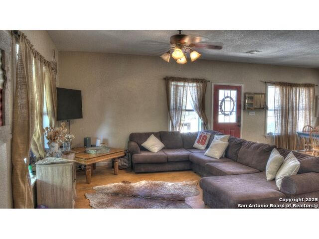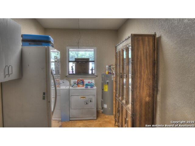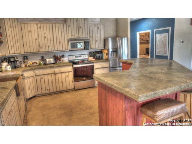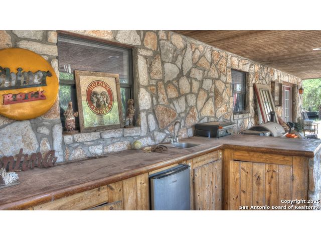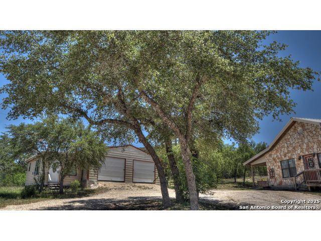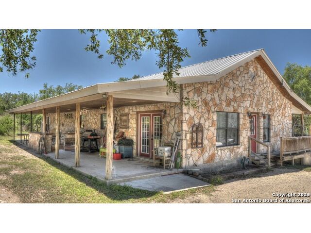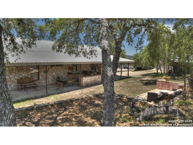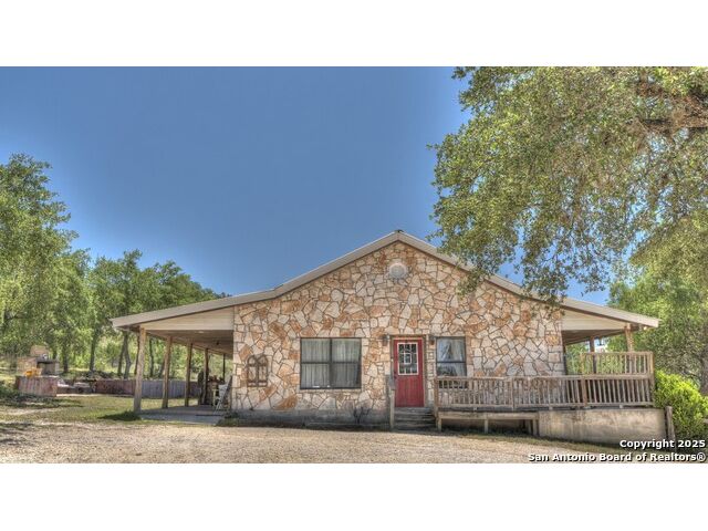 Welcome home to this charming 3 BR/2 BA Hill Country rock home situated on two acres in Saddle Mountain Estates. Inside features include concrete counters and floors, stainless steel appliances, an apron-front kitchen sink, a spacious laundry room with an additional freezer, a large primary bedroom with an en-suite bathroom and walk-in closet. Built in 2008 and featuring 2,079 sq ft of living area (per RCAD). Sit on the front porch that spans the length of the home and enjoy the evening sunsets and hill country views, or step out back onto the covered patio with a bar and custom fire pit, perfect for entertaining. The 1 BR/1 Ba guest house offers additional accommodations, and the oversized 2-car garage/workshop offers added storage. Central Heat/AC. All kitchen appliances convey. Fenced yard. Minimal restrictions and no HOA. Priced below the appraisal district's assessed value, and the sellers are motivated!