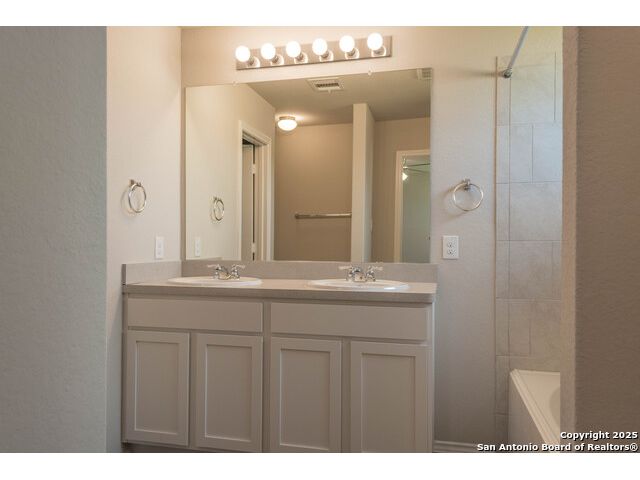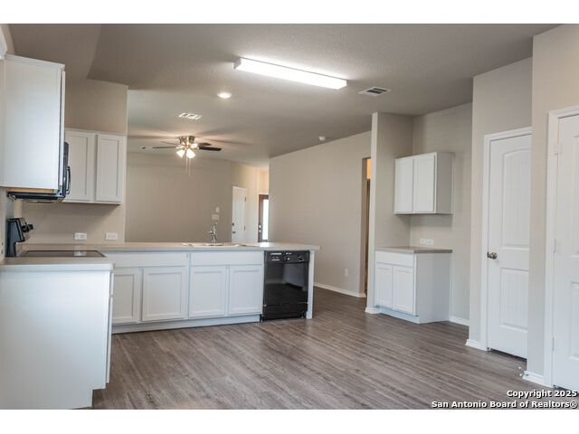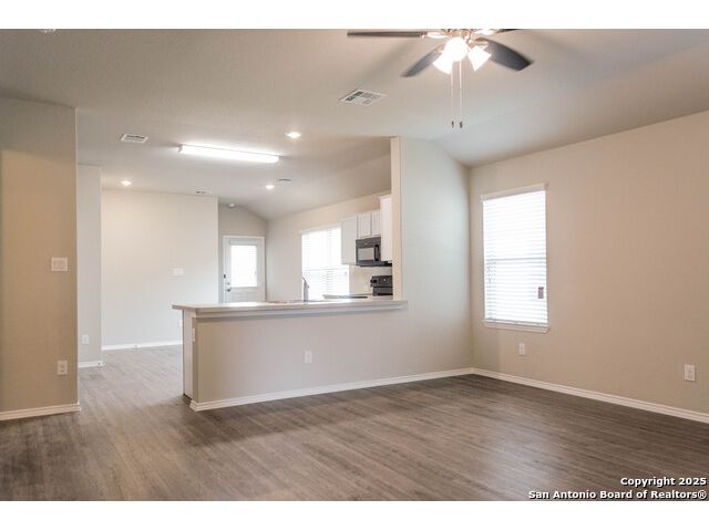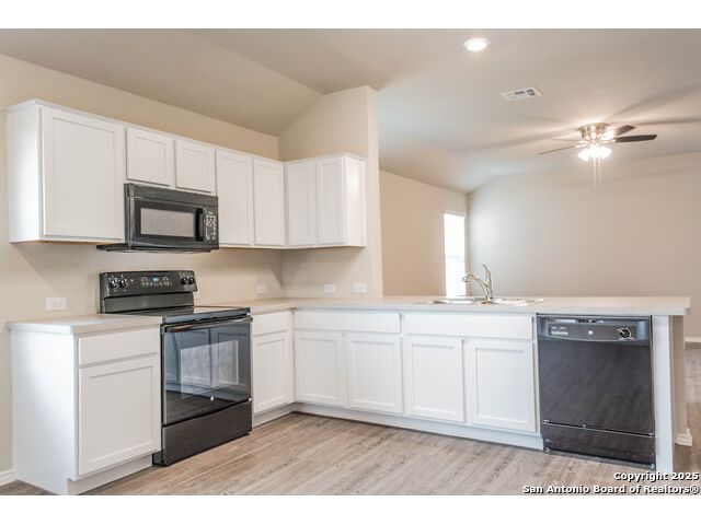Discover this perfect starter home situated in the heart of New Braunfels. Featuring a comfortable layout with vinyl floors and carpet throughout, this residence offers a cozy yet functional living space. The eat-in kitchen boasts a breakfast bar overlooking the spacious living room, ideal for entertaining and daily gatherings. Ample cabinets and counter space provide plenty of storage and prep area. The split primary bedroom includes dual vanities, offering privacy and convenience. Don't miss the opportunity to make this charming home yours!