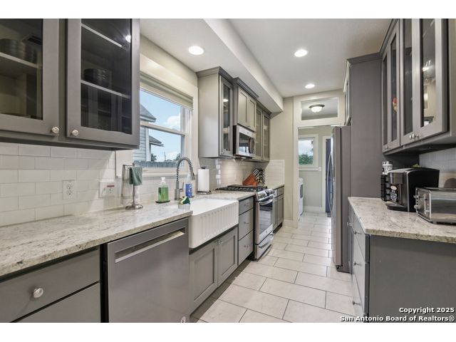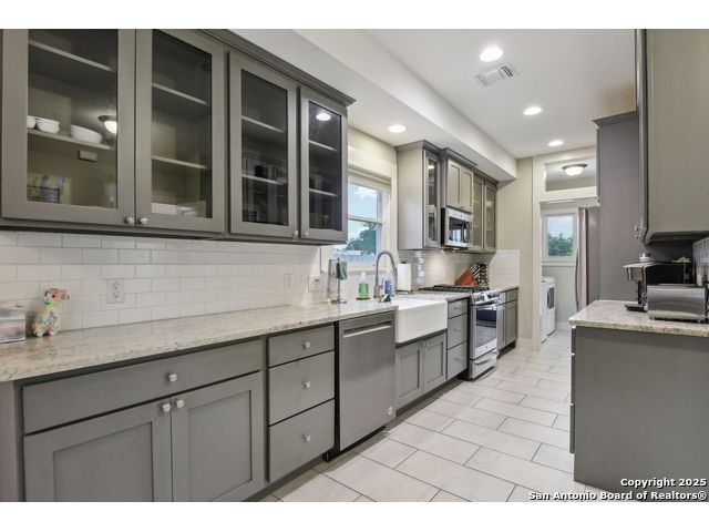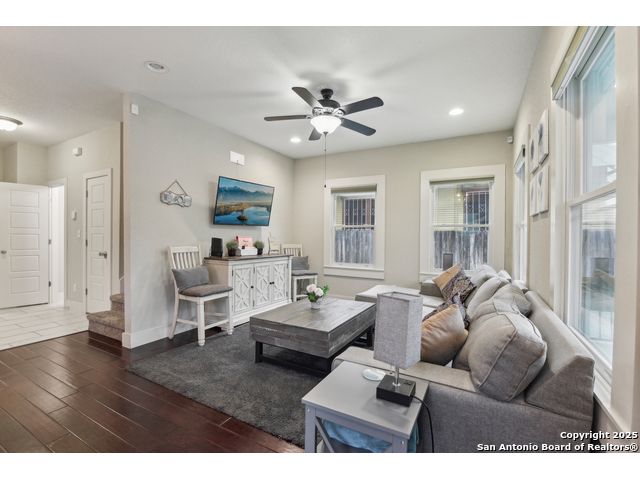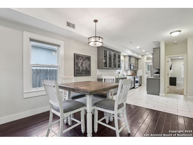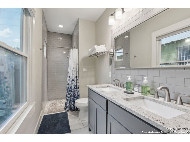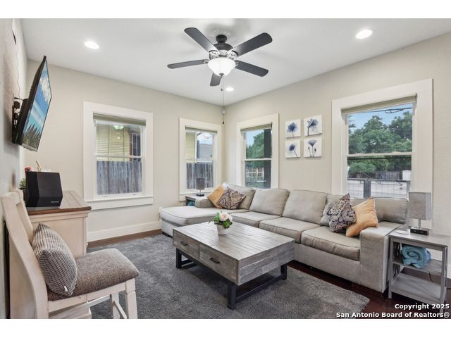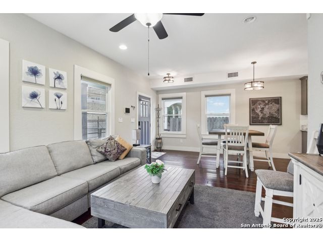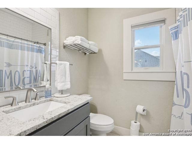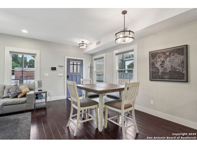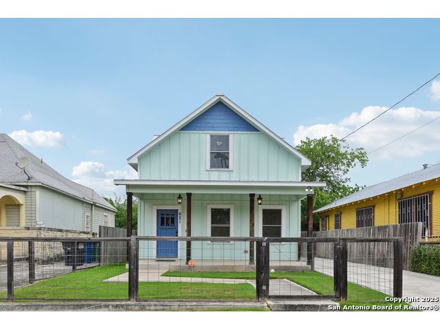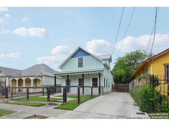 Located in the historic Dignowity Hill district of San Antonio, this lovely two-story home offers both charm and convenience. Less than a mile from the Alamodome, Convention Center, and vibrant downtown, you'll enjoy easy access to the best the city has to offer. From the backyard, take in impressive views of the Tower of the Americas and the Marriott Hotel that overlooks the River Walk. The neighborhood is surprisingly quiet, adding to the home's appeal. Inside, a light and bright floor plan welcomes you with neutral tones, beautiful flooring, and modern lighting throughout. The kitchen features a stylish farm sink, soft-close drawers and cabinets, generous counter space, and stainless steel appliances-including gas cooking. An indoor laundry room offers added convenience, and the washer and dryer were just purchased in September 2024. The primary bedroom is located on the first floor and includes a full bath and a large walk-in closet. Upstairs, you'll find two secondary bedrooms ideal for guests, a home office, or additional living space. Additional features include cordless, pulldown, room-darkening shades throughout the home, as well as a backyard fire pit and surrounding patio area that are non-permanent and can be easily moved or removed. The security system is owned-not leased-and monitored by Vivint, with four outdoor cameras including a recently upgraded doorbell camera. This home places you near local attractions, dining, and entertainment. Schedule your personal tour today and see what makes this property a great place to call home!