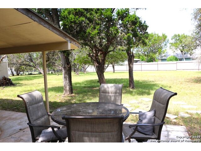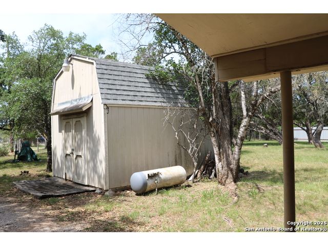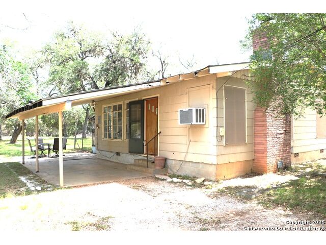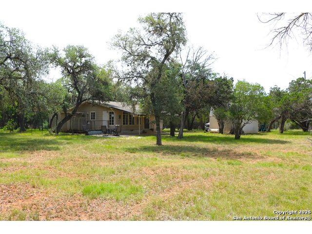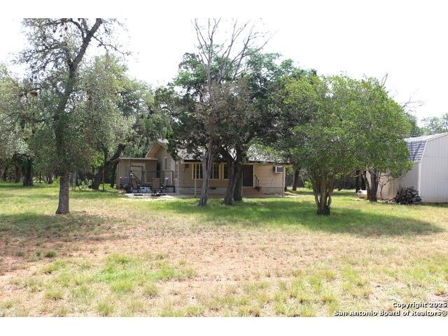 Adorable one bedroom/one bath home with covered patio sits on just under 1 acre of land in the serene Bandera Falls neighborhood. New roof 05/25 and new windows throughout 07/25. The dining room featuring a fireplace, large bathroom with shower/tub combo. New well house being constructed before closing. Additionally, there is a storage shed with electric. Corner lot with many mature trees and lots of space. Bandera Falls offers a River Park with River Access.